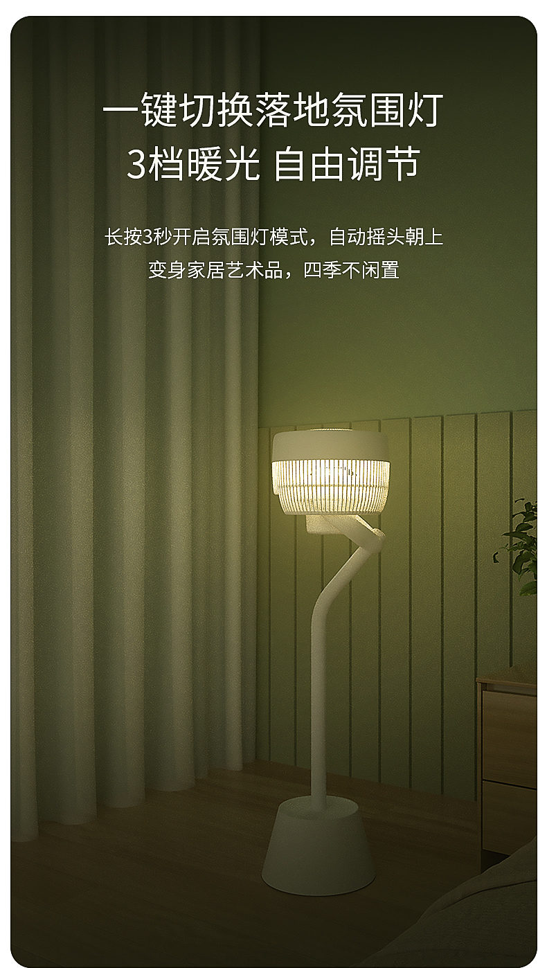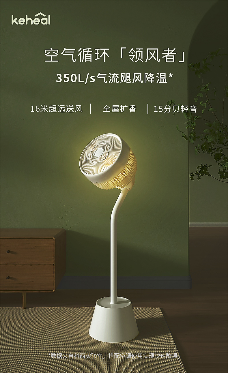 科西(KEHEAL)空气循环扇静音立式变频遥控节能落地氛围灯落地扇 (单位:个) 禅意白