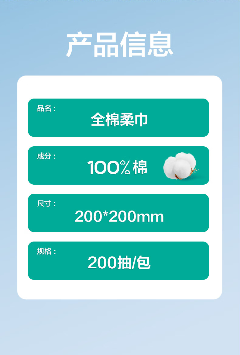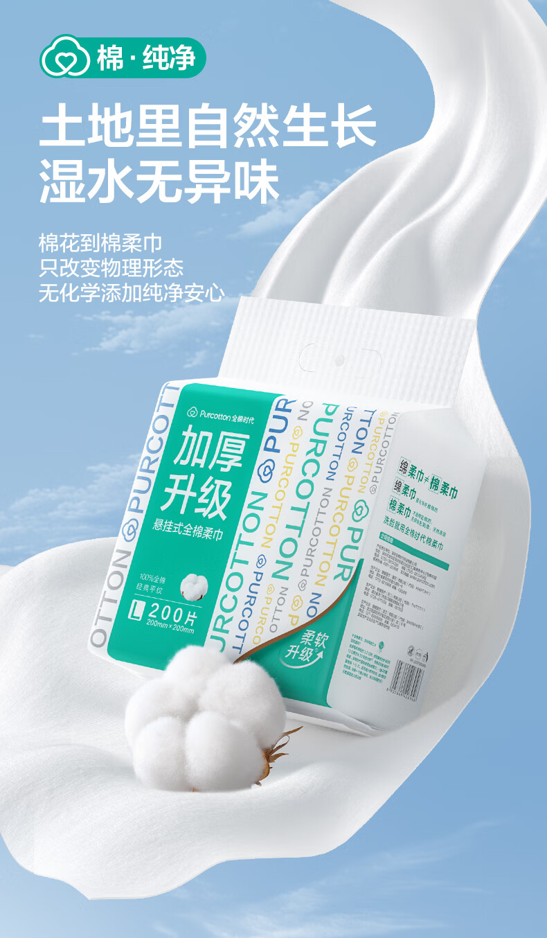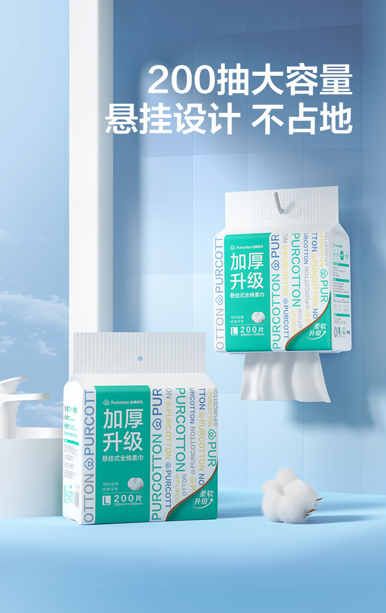 全棉时代 PPJ23700040 20*20CM 200抽/包 加厚升级悬挂式洗脸巾 白色(单位:提)