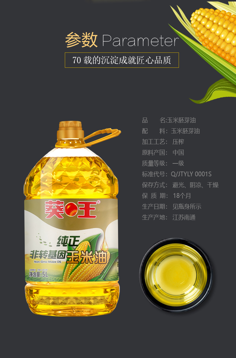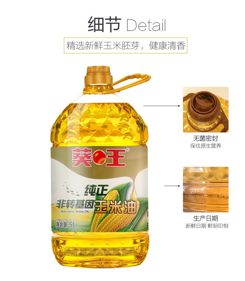 葵王 纯正非转基因玉米油5L 桶 黄色 5L