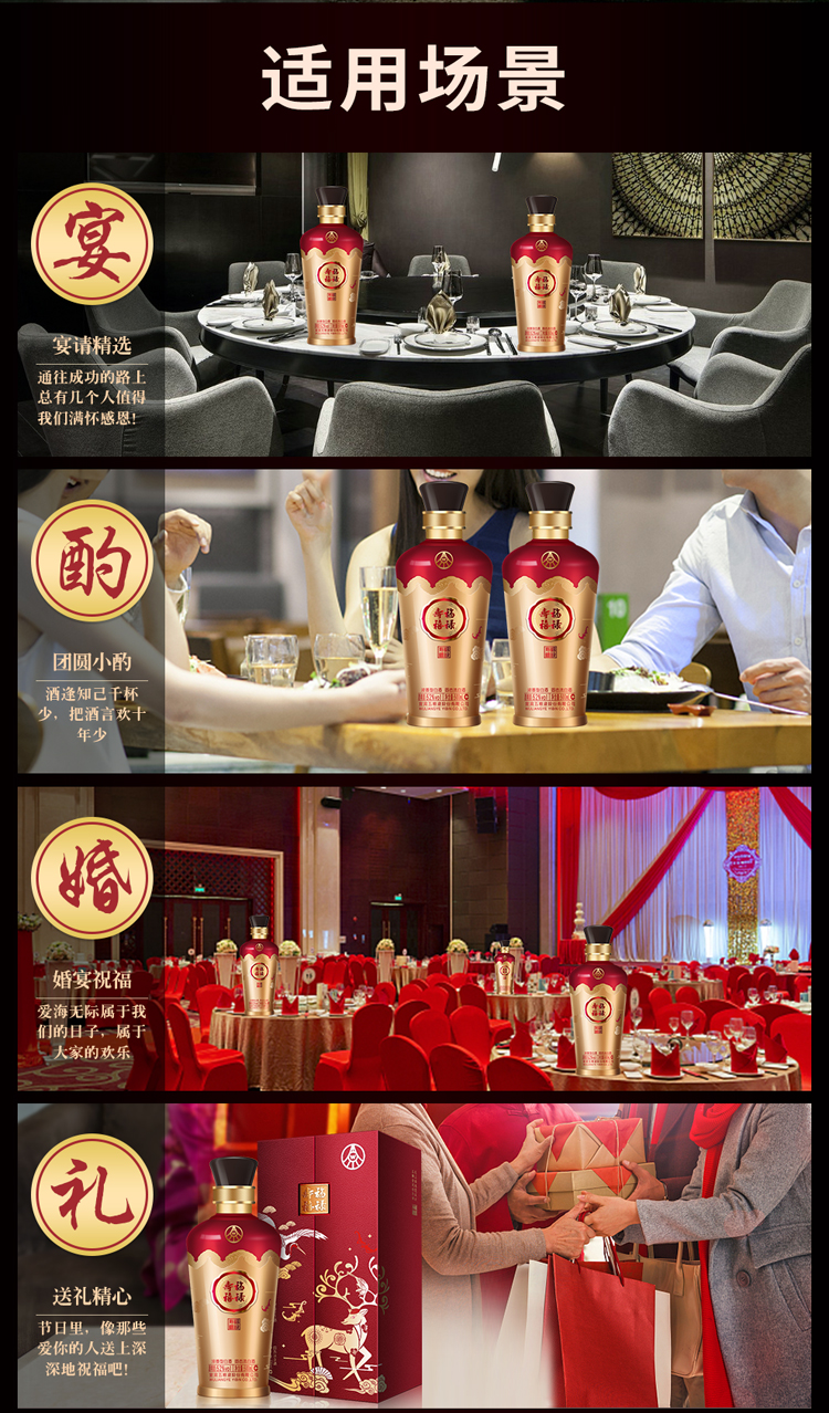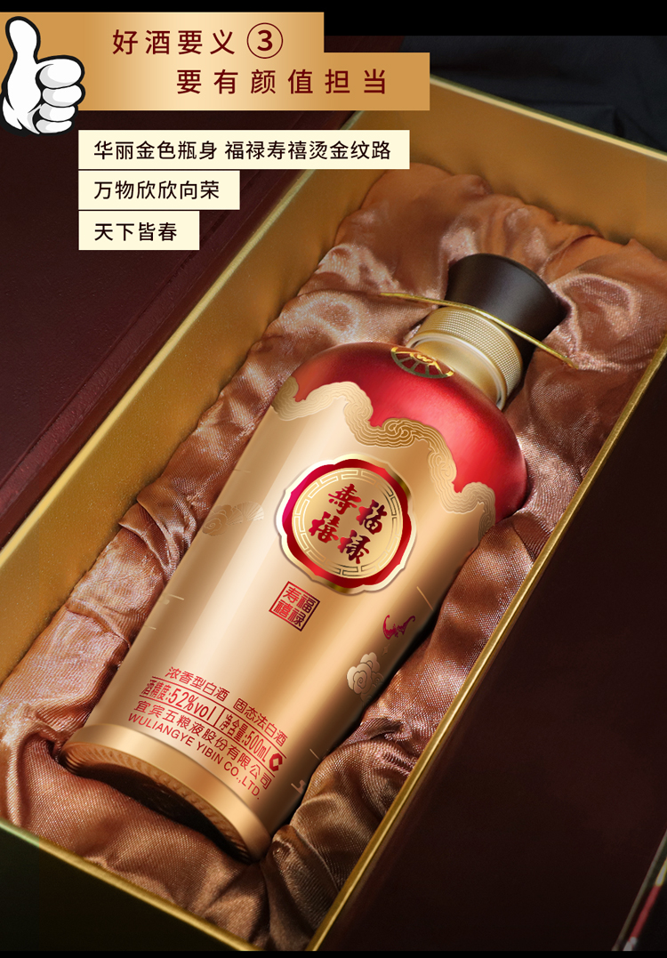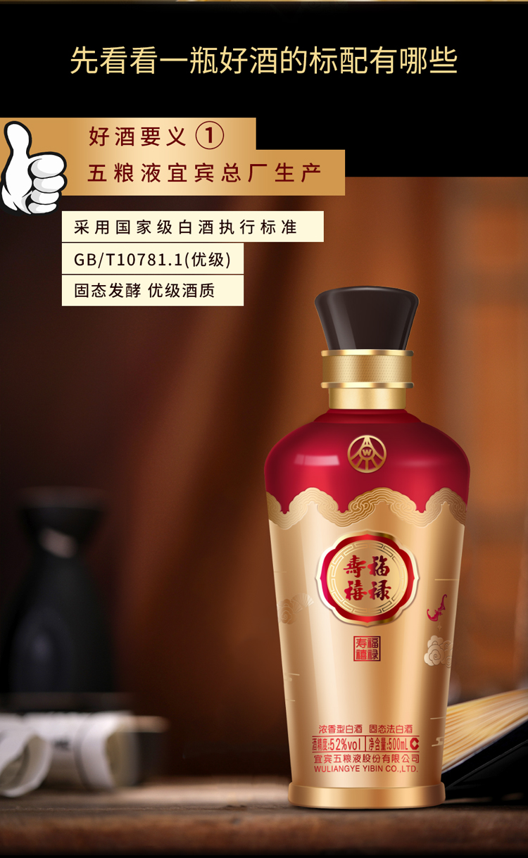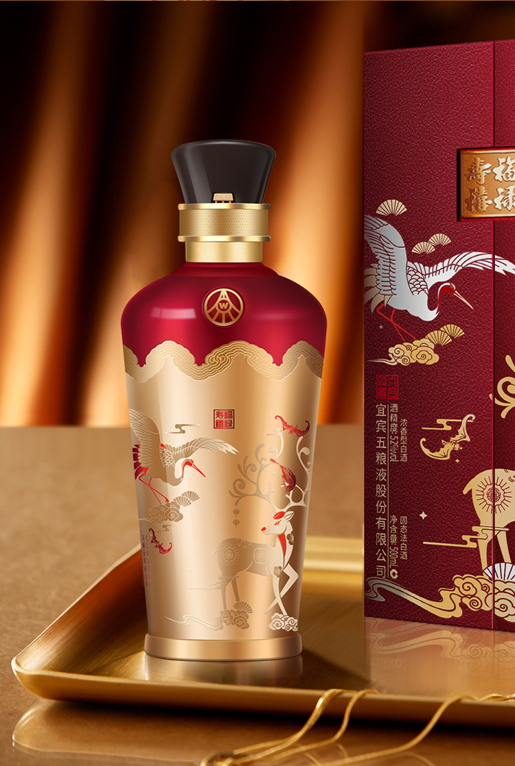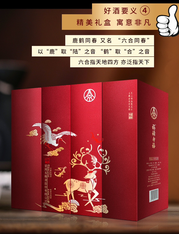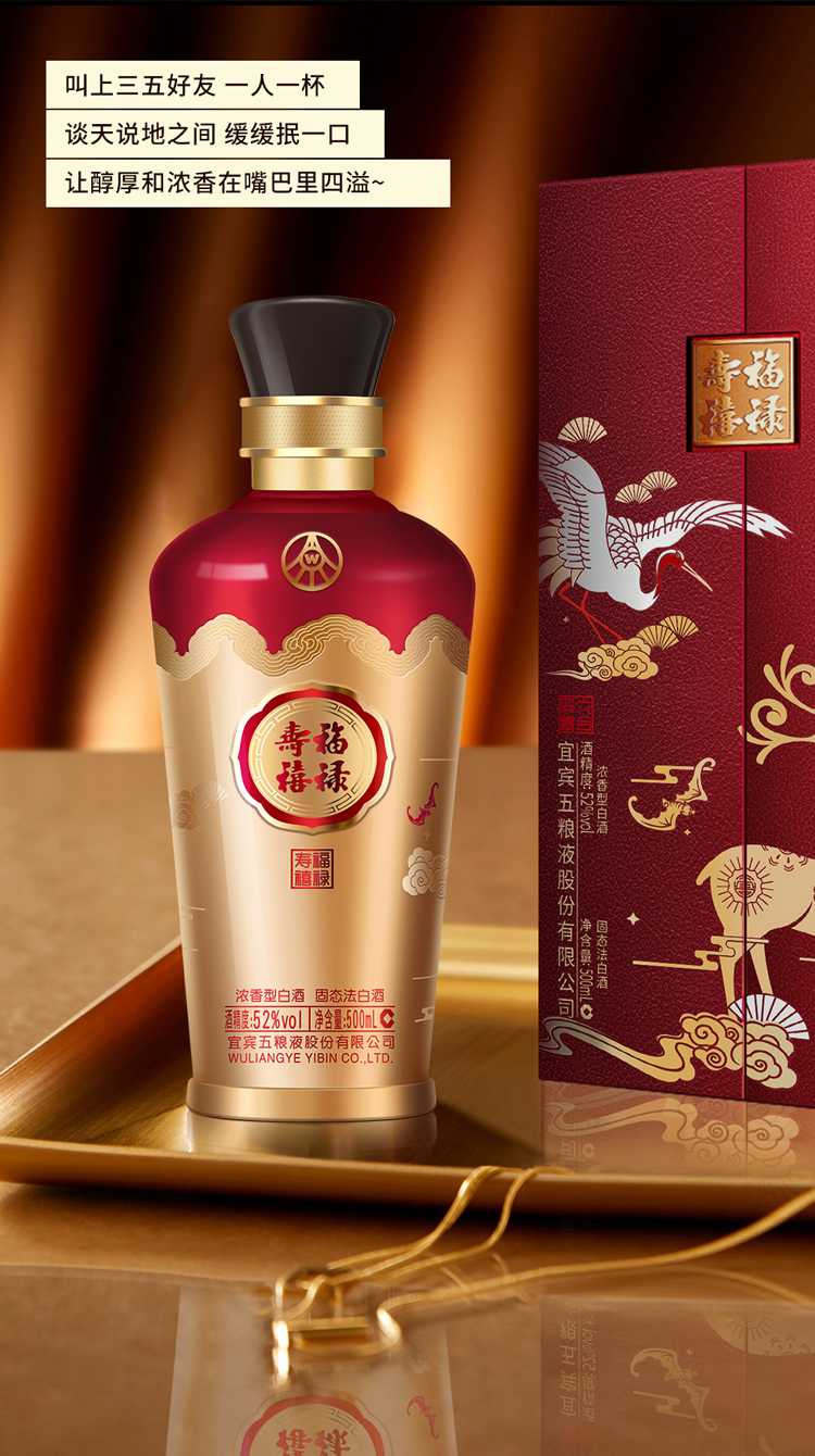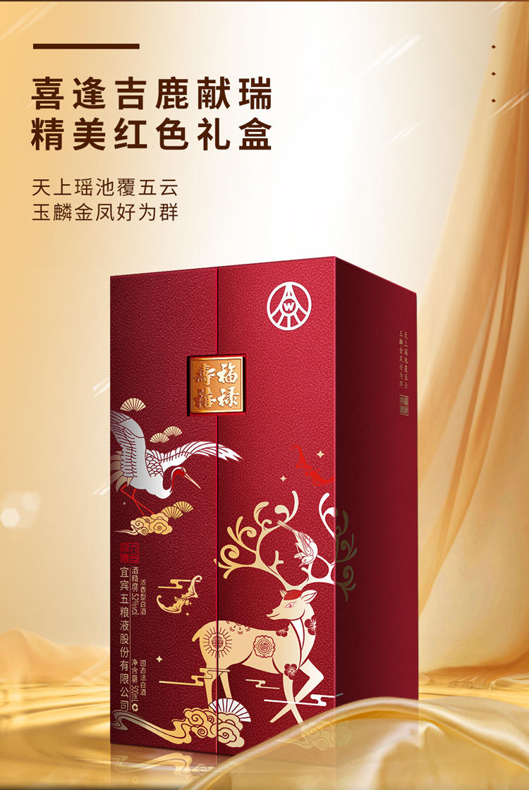 五粮液股份 福禄寿禧六合同春 浓香型白酒 52度 500ml*2瓶/组 红色