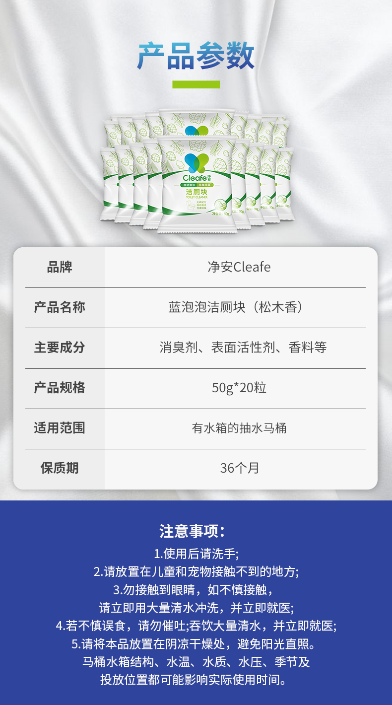 净安马桶自动清洁剂(蓝泡泡)松木香50g*20(单位:袋) 白色