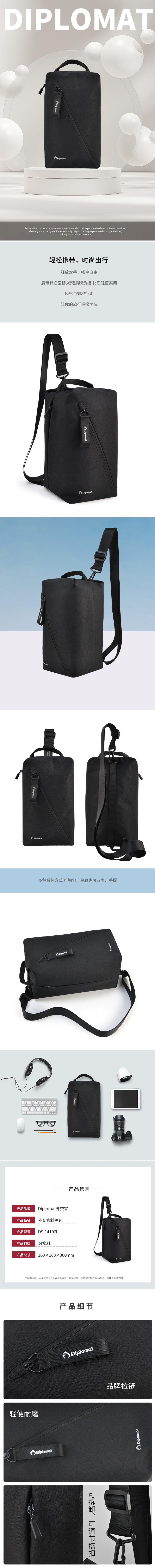 Diplomat外交官斜挎包DS-14106L 单位:只 黑色