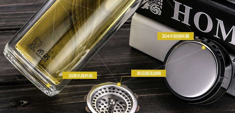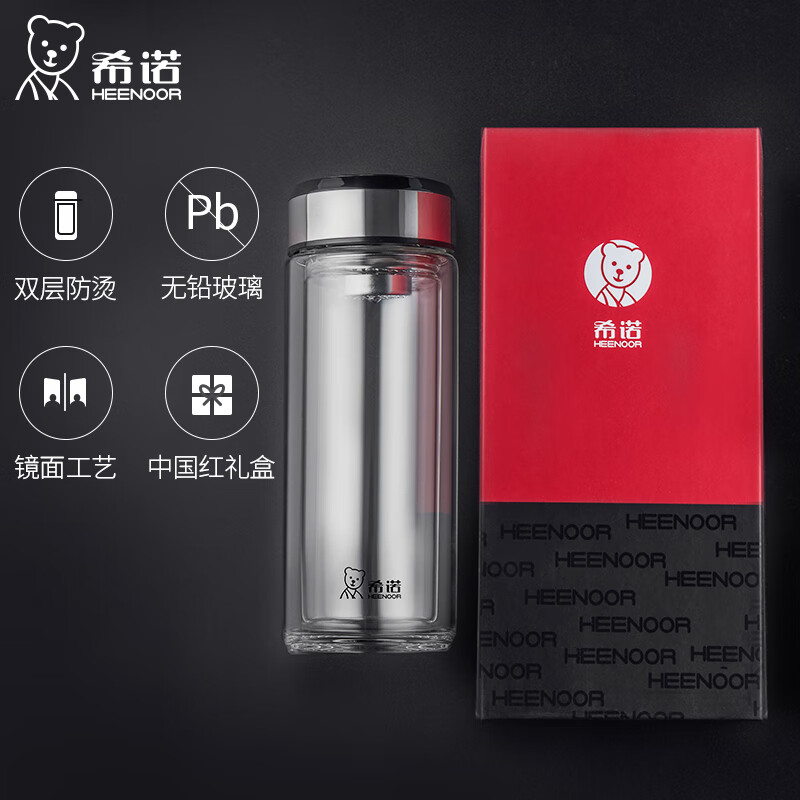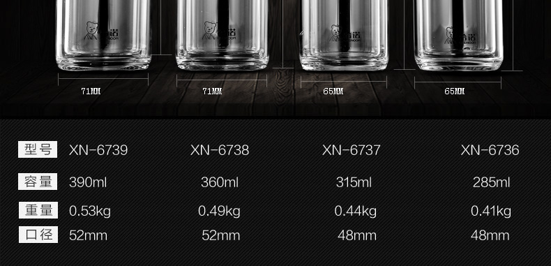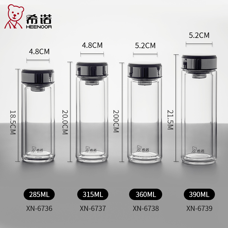 希诺双层玻璃杯 XN-6738 (单位:个)360ML 不锈钢色
