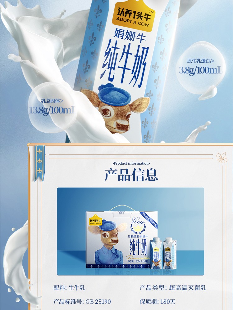 认养一头牛娟姗奶梦幻盖250ml*10入2提装 娟姗奶两提装