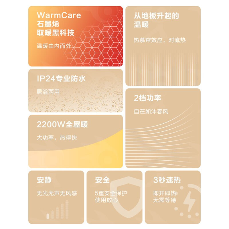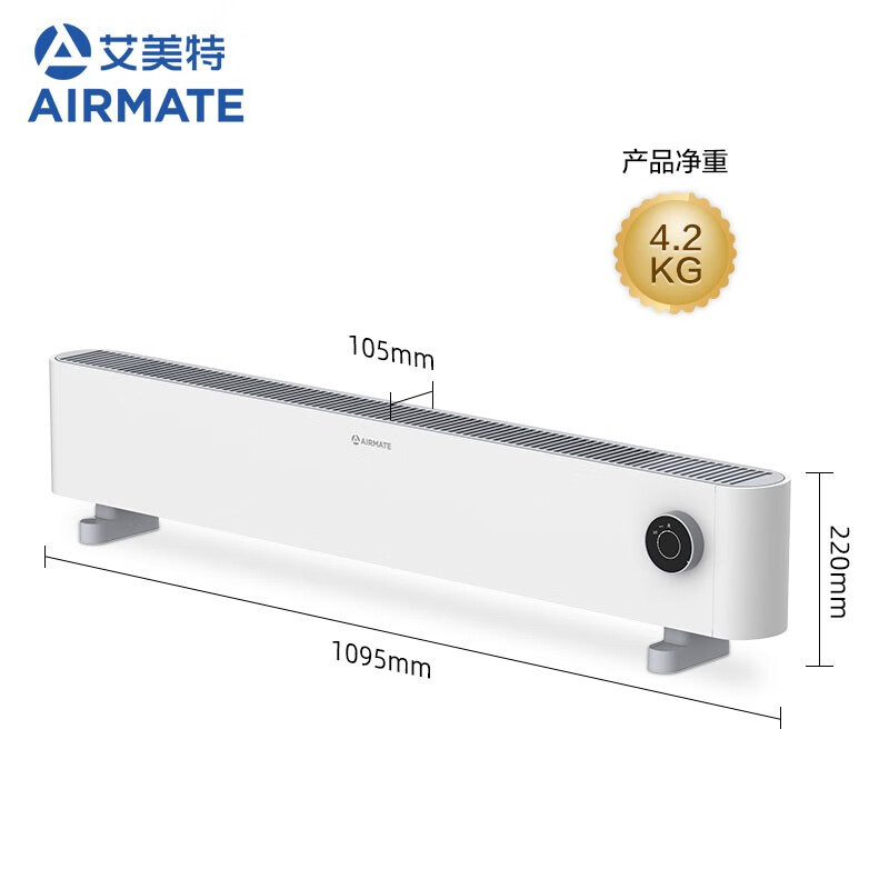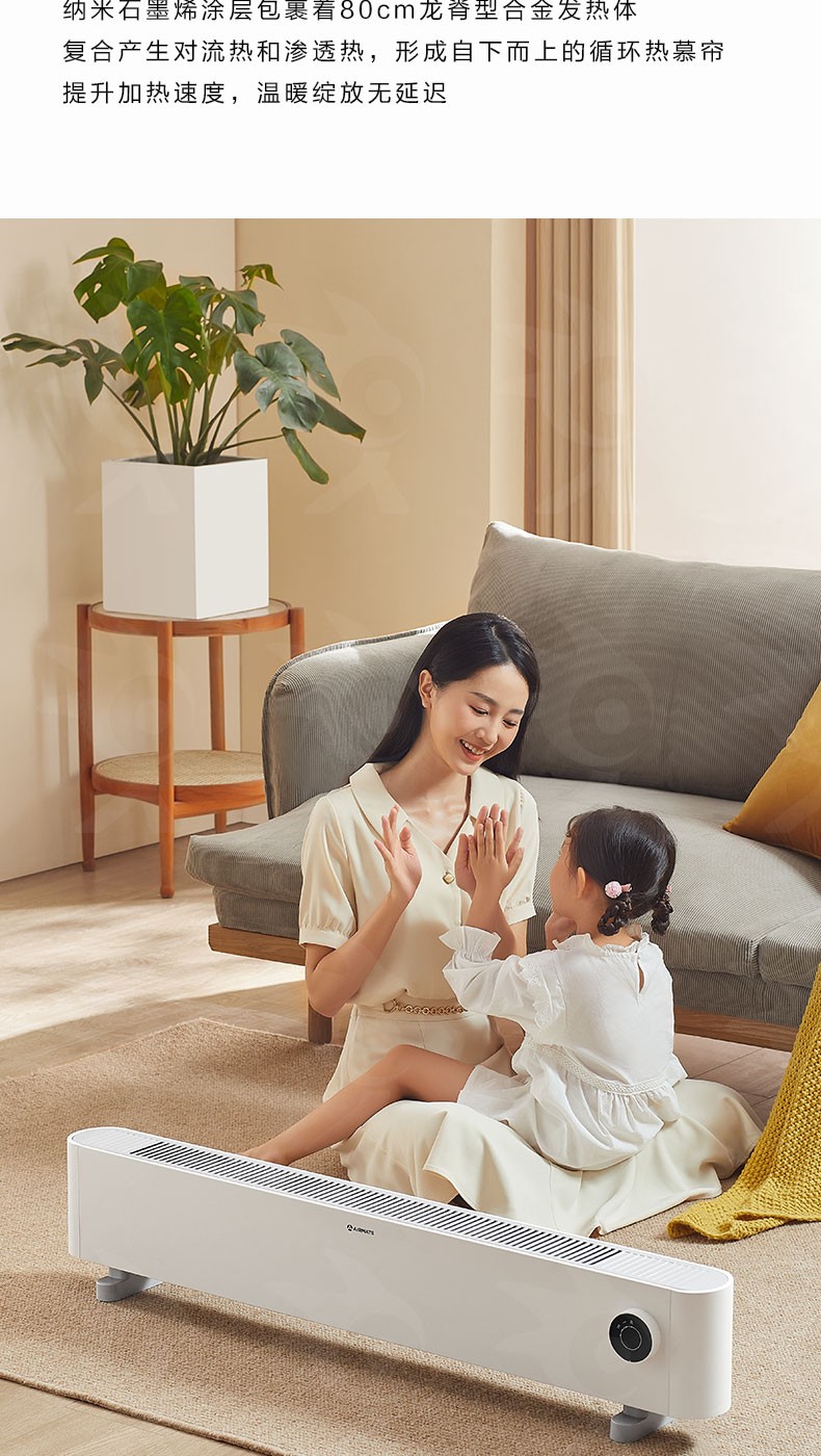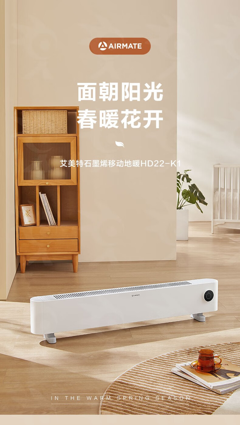 艾美特(AIRMATE) 石墨烯踢脚线取暖器客厅卧室办公居浴两用移动地暖HD22-K1 本白色