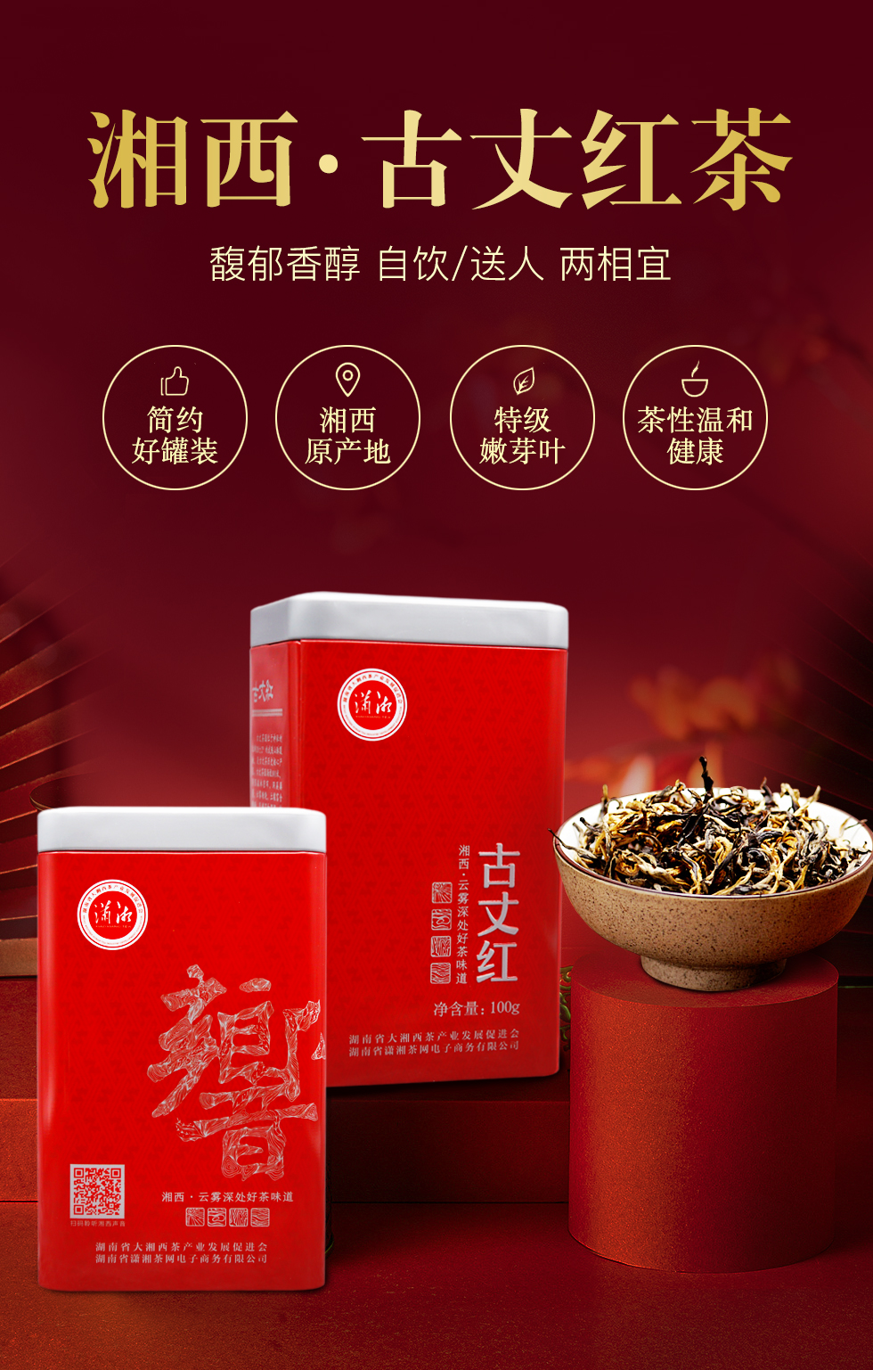 潇湘牌罐装蜜香古丈红茶100克(单位:罐) 拿铁色