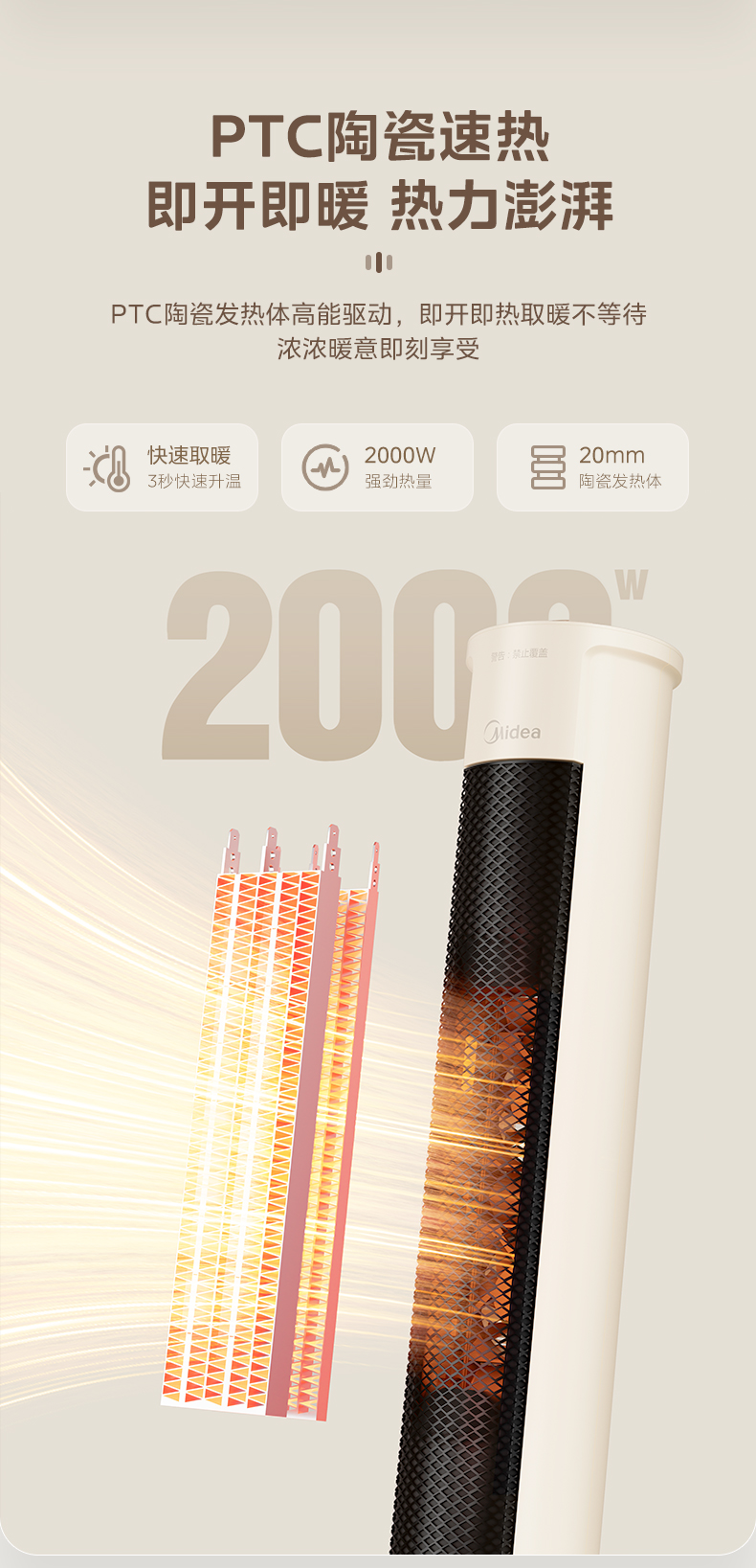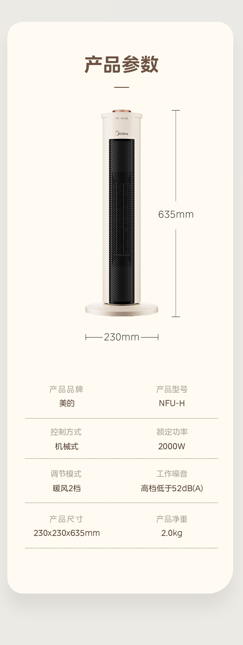 美的(Midea)家用立式电暖器 NFU-H(单位:台) 杏色+雅士金