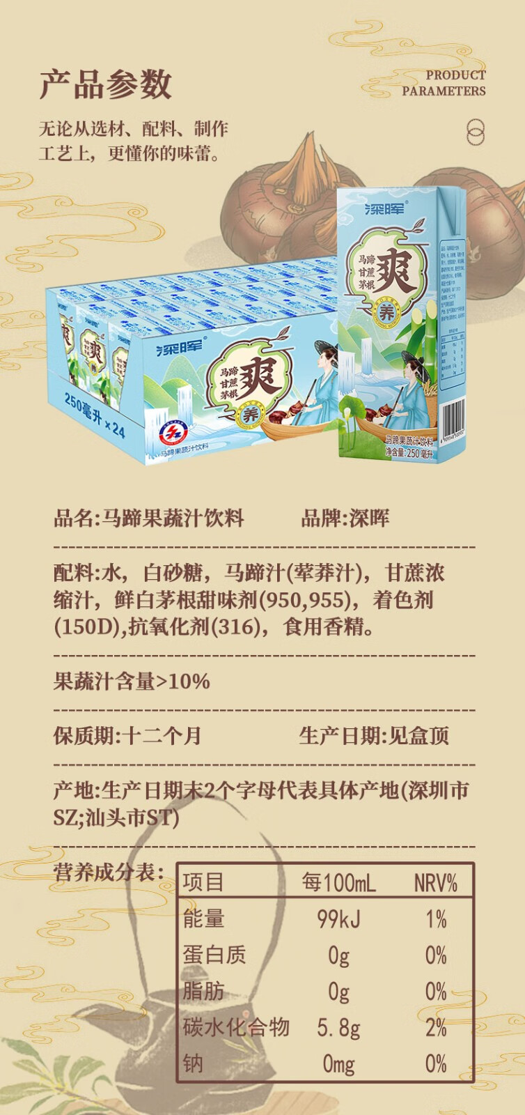 深晖马蹄爽饮料250*24盒*1箱 马蹄爽饮料250*24盒*1箱