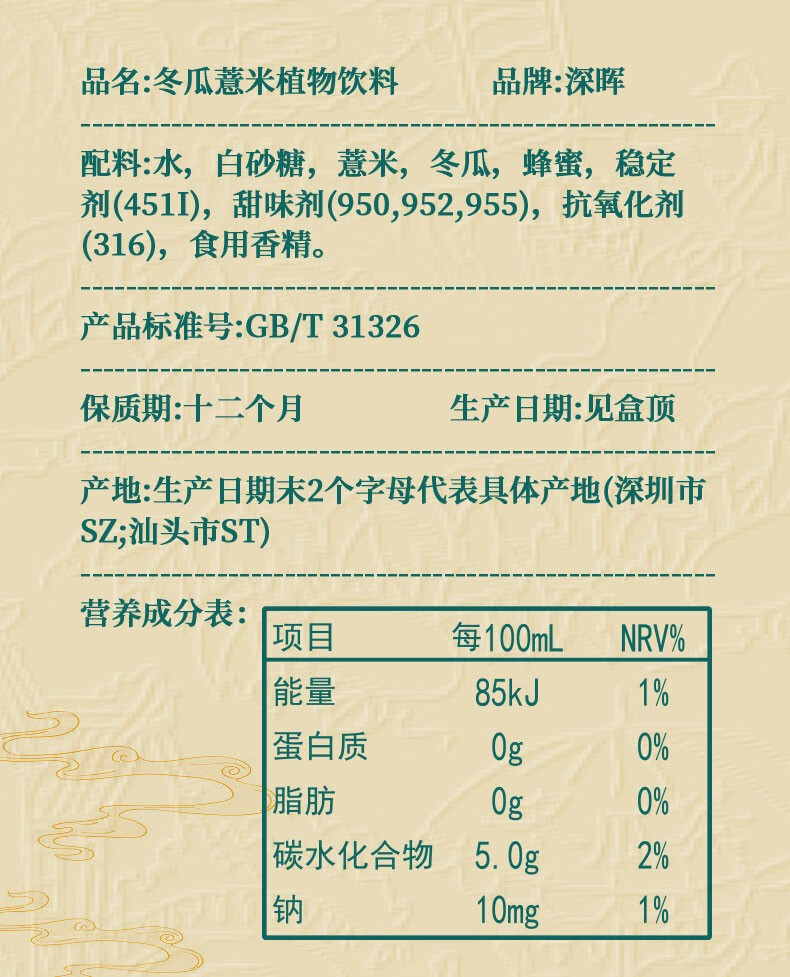 深晖冬瓜薏米水250*24盒*1箱 冬瓜薏米水250*24盒*1箱