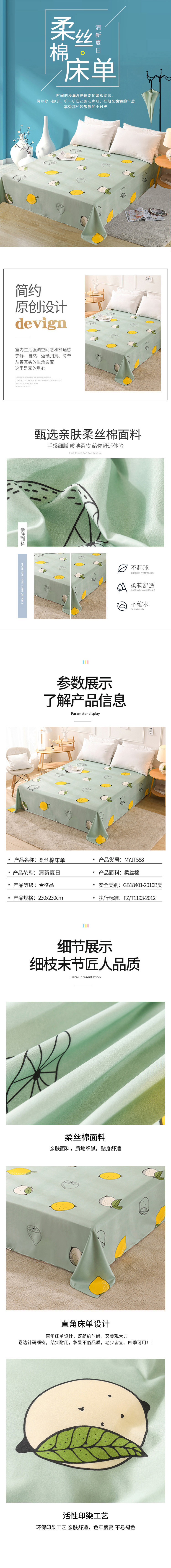 臻·梦圆 柔丝棉床单 清新夏日MYJT588(230x230cm) 绿色