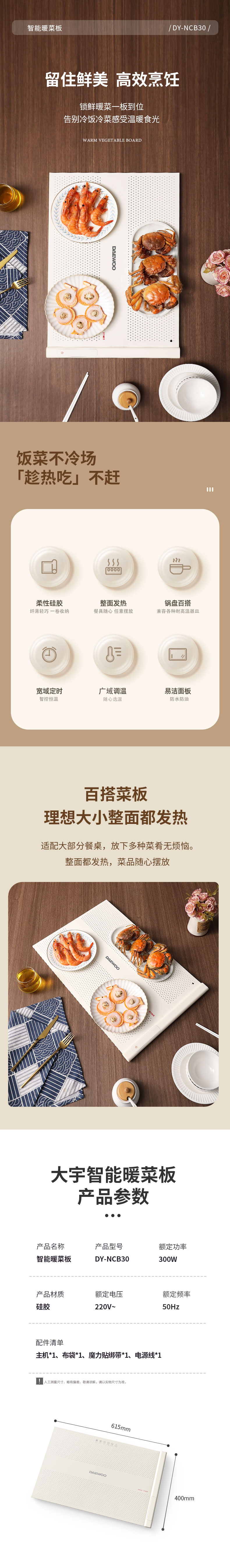 大宇(DAEWOO)可收纳智能暖菜板DY-NCB30 单位(台) 白色