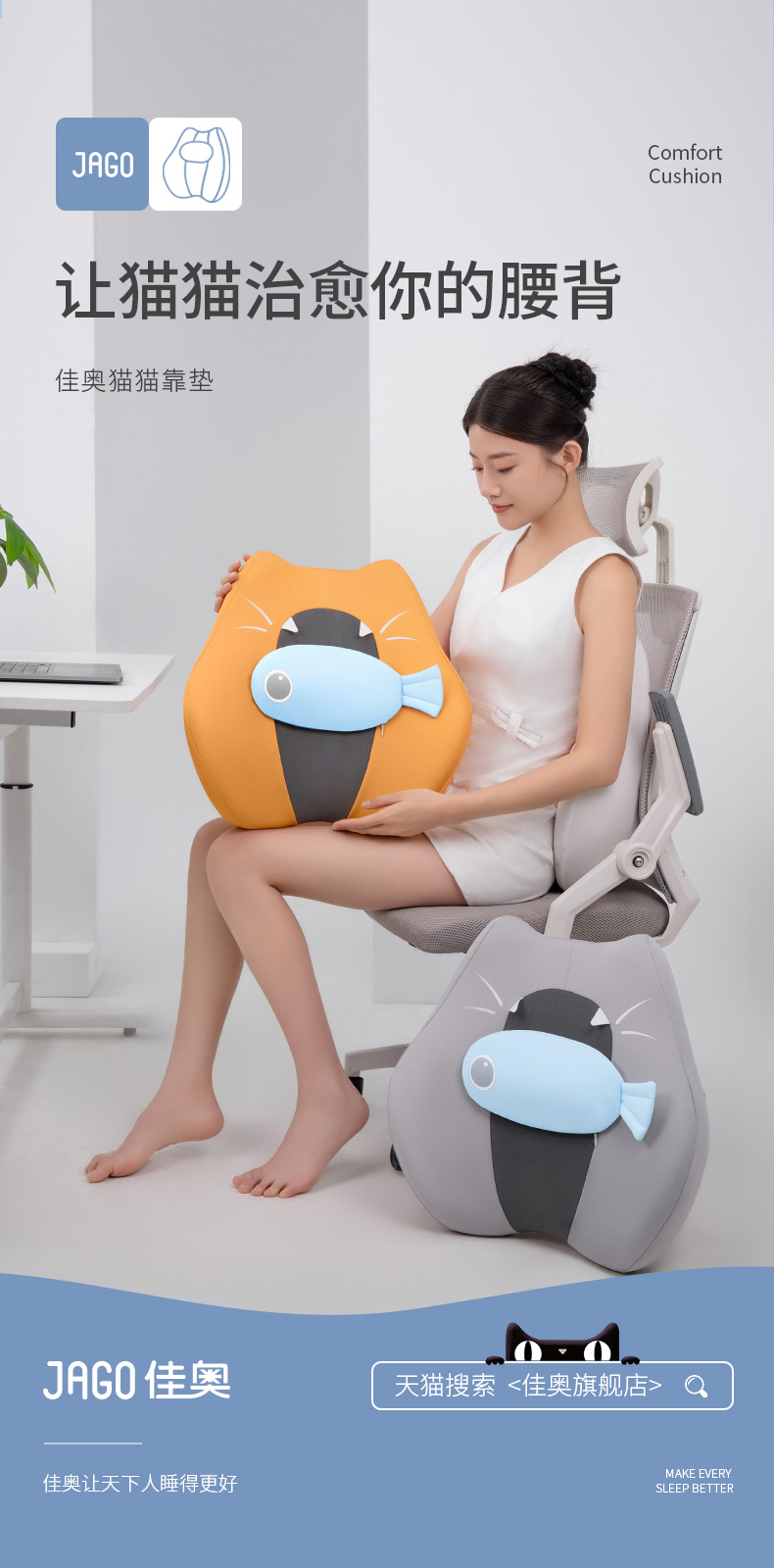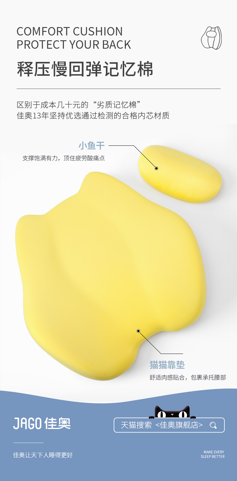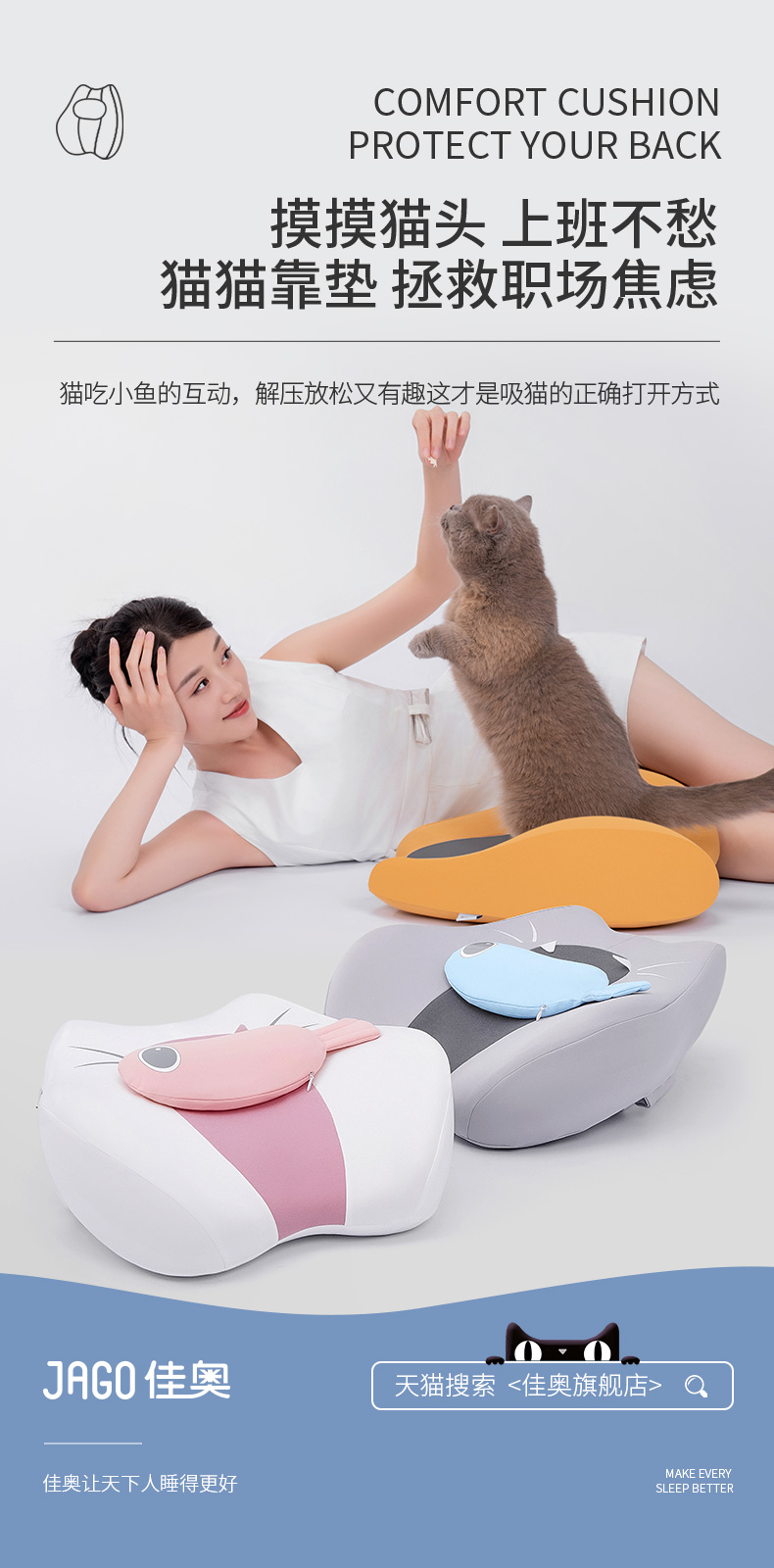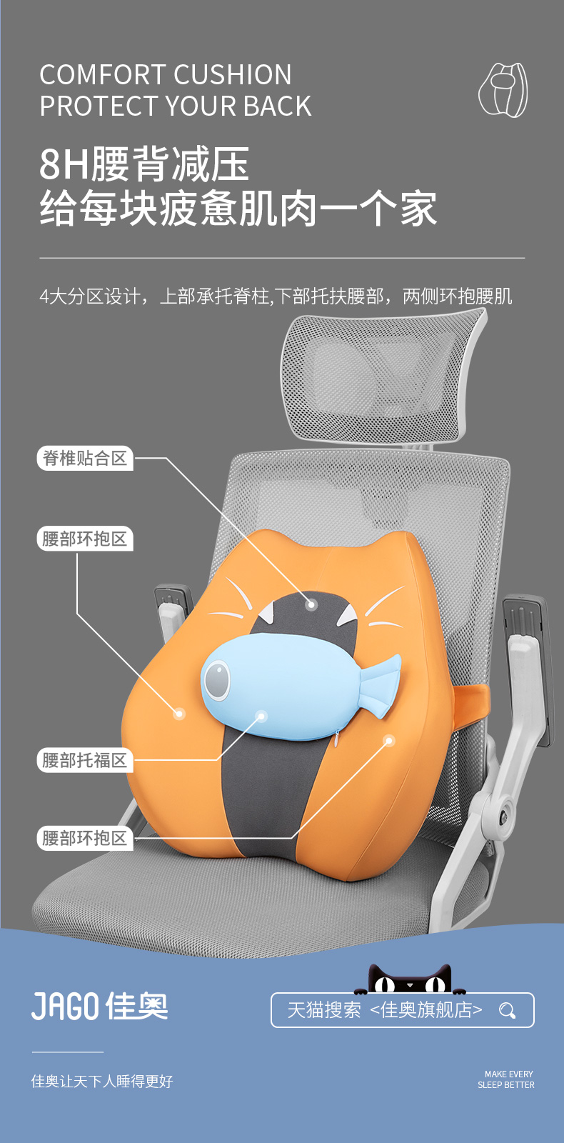佳奥 猫猫靠垫卡通款 不带小鱼干 普通基础腰垫 单位:个 灰色