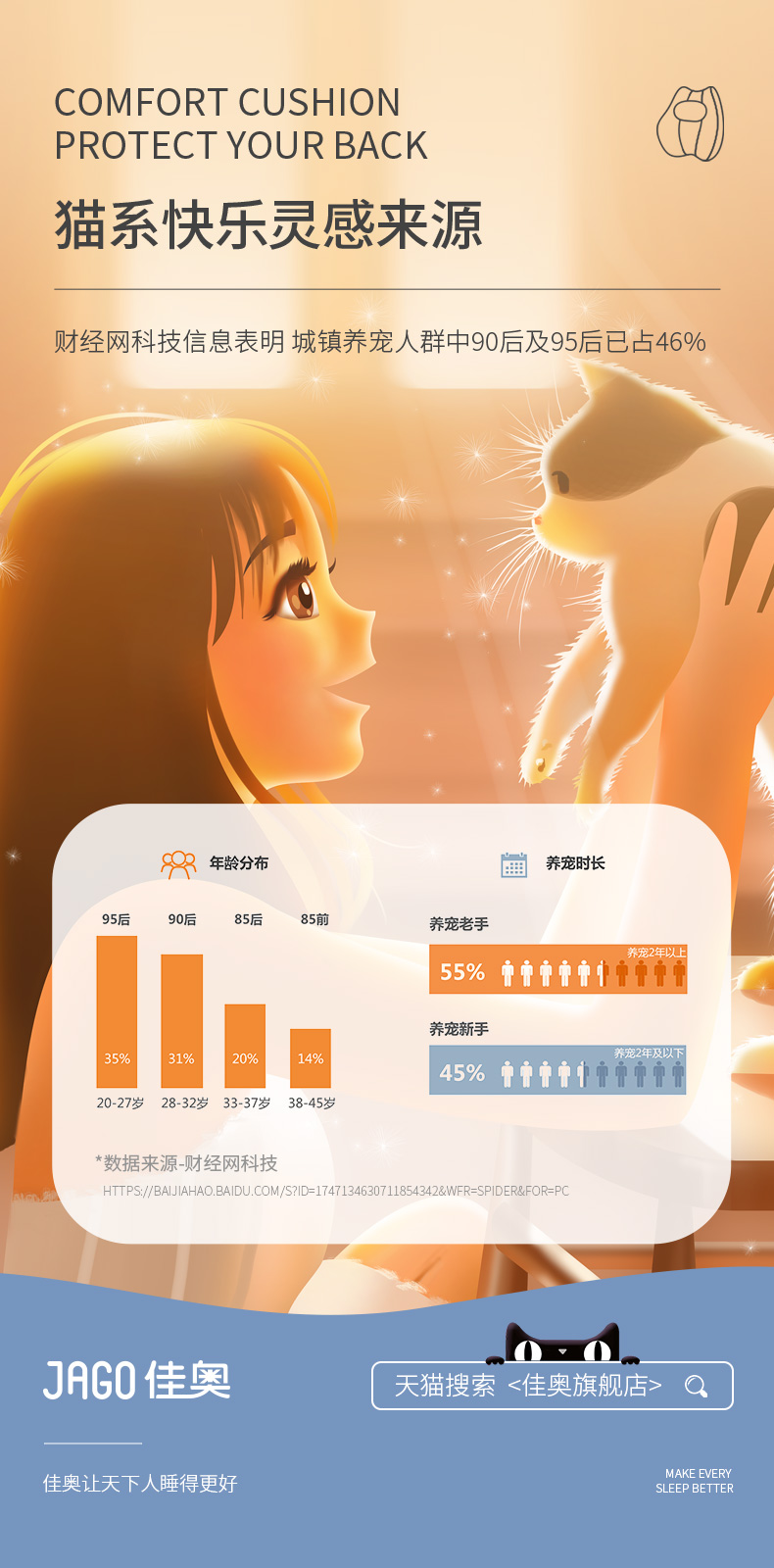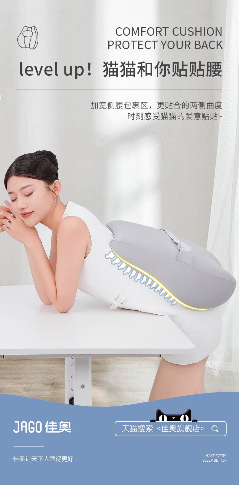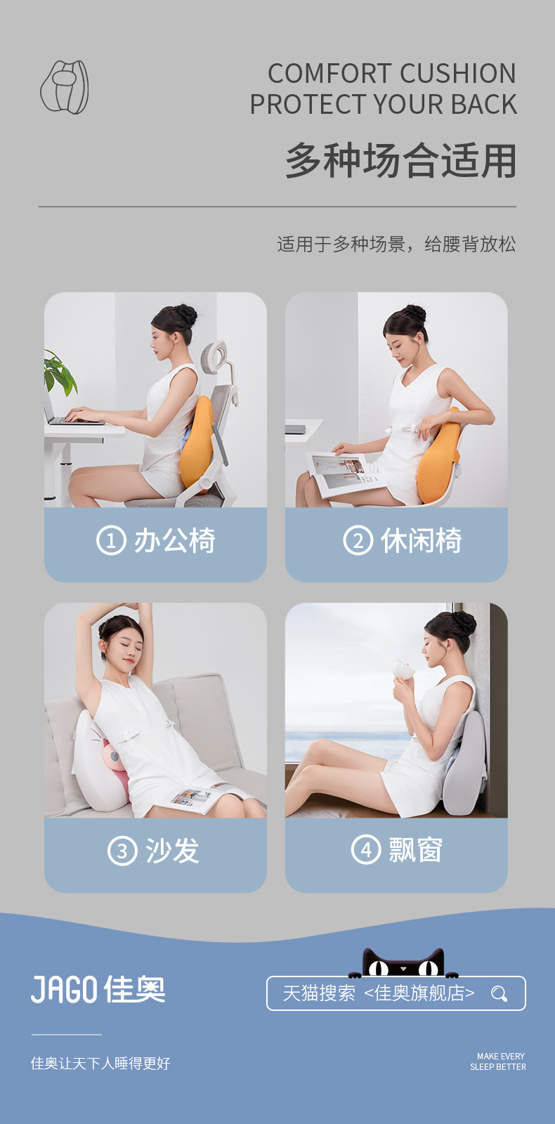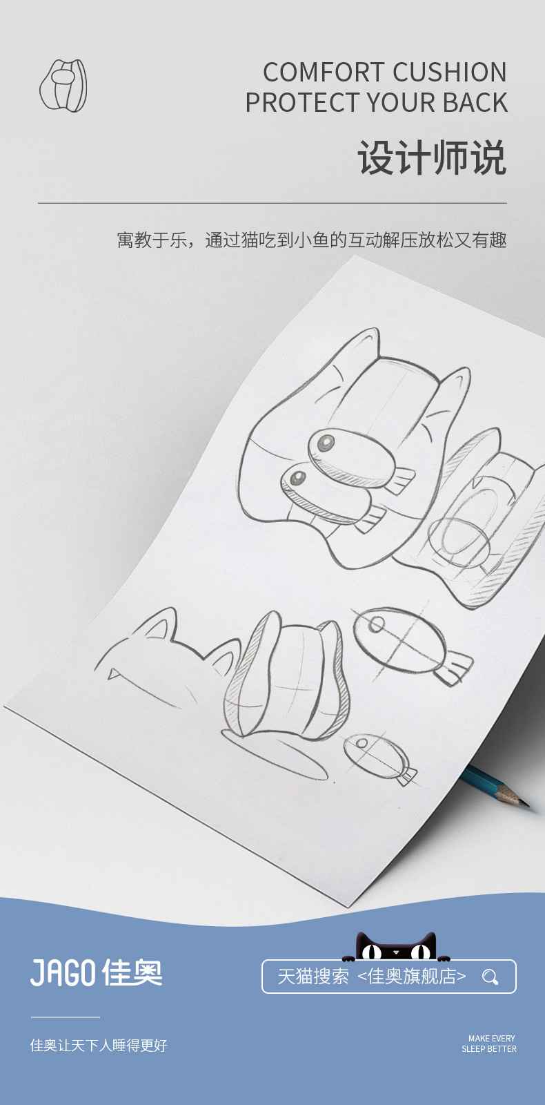 佳奥 猫猫靠垫卡通款 不带小鱼干 普通基础腰垫 单位:个 灰色