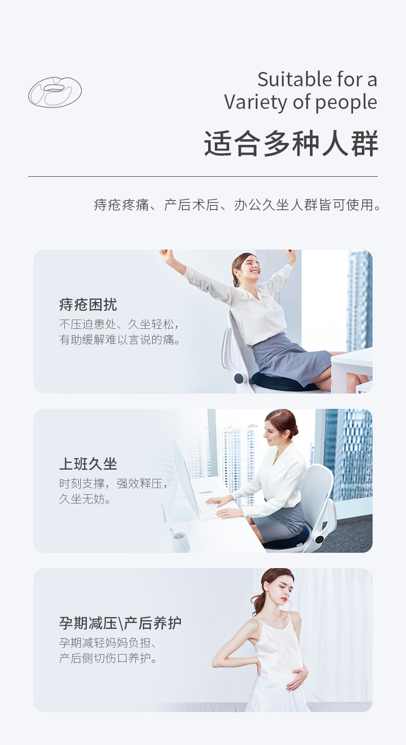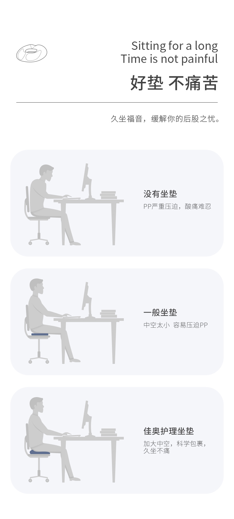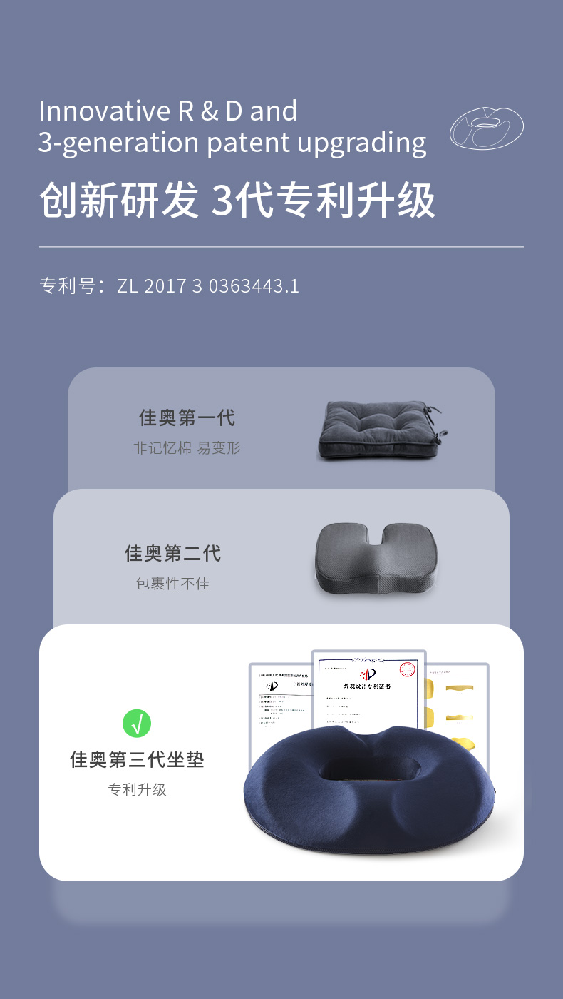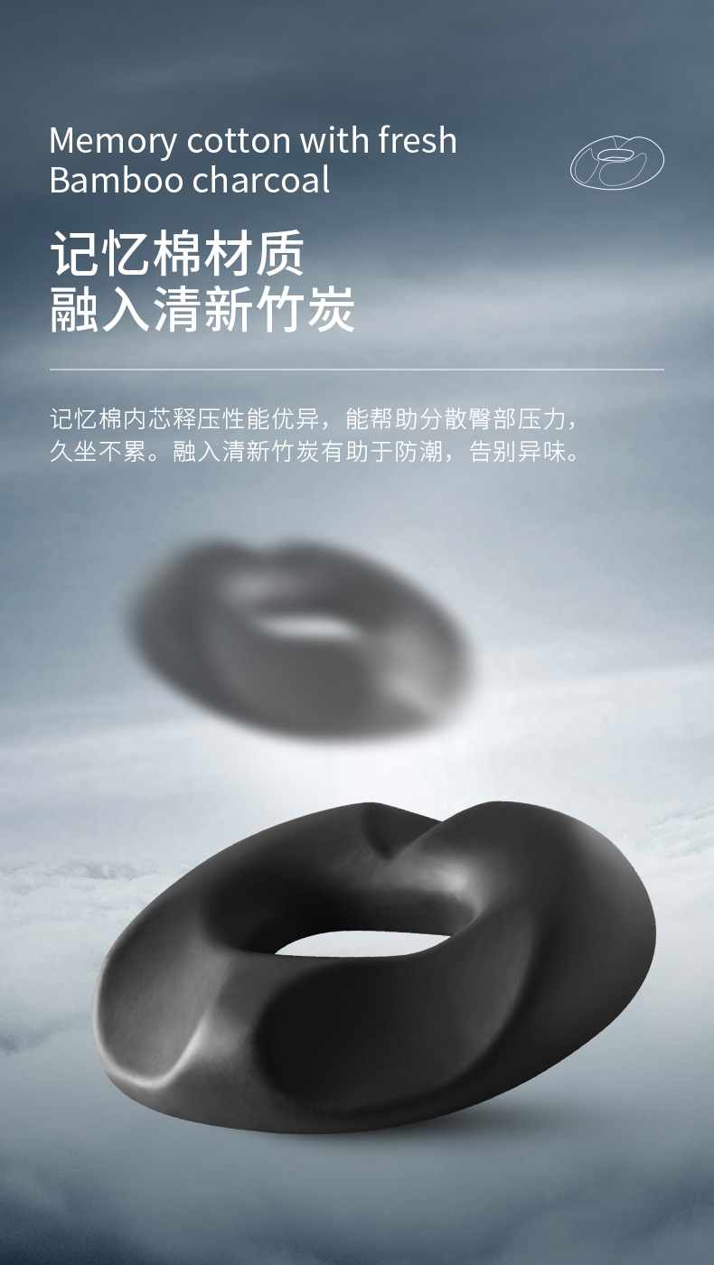 佳奥 (靠垫+坐垫)套装 办公室久坐美臀屁垫护腰孕妇减压术后坐垫透气软垫子椅垫 男士竹炭款