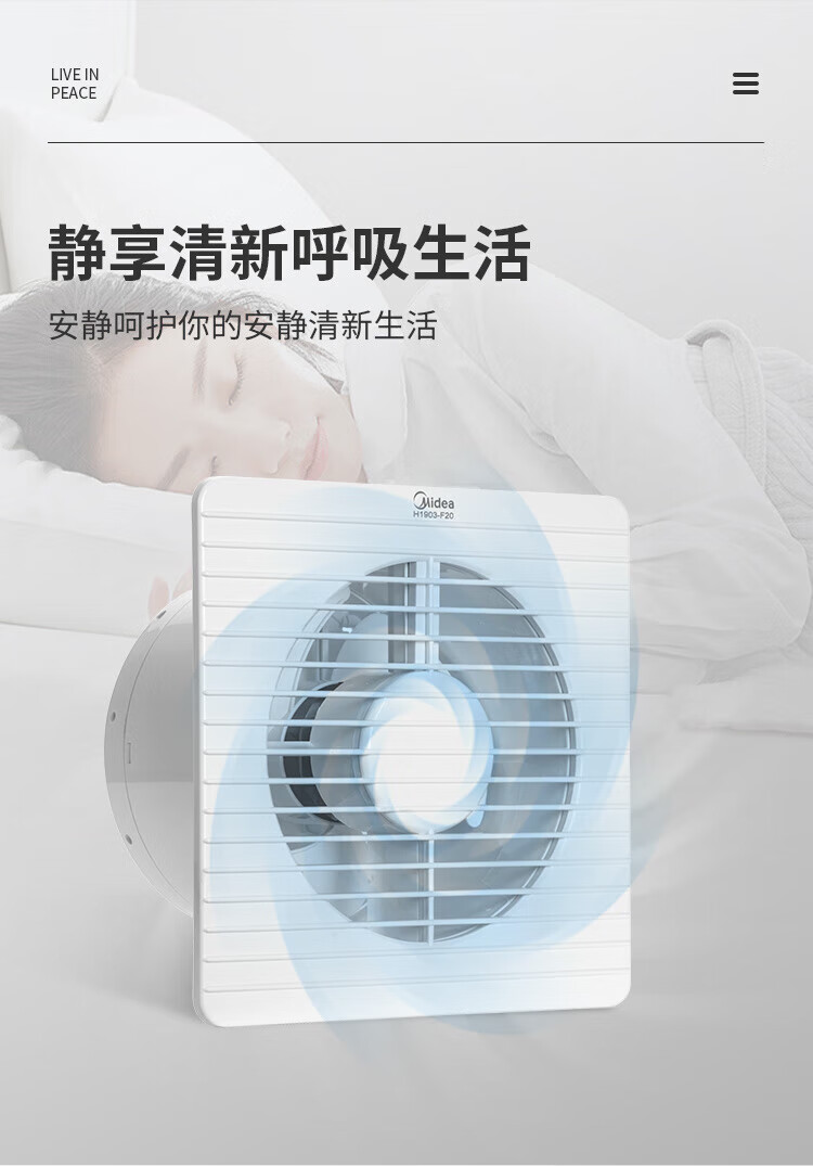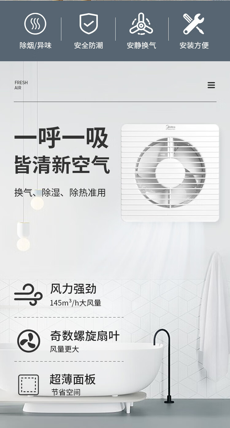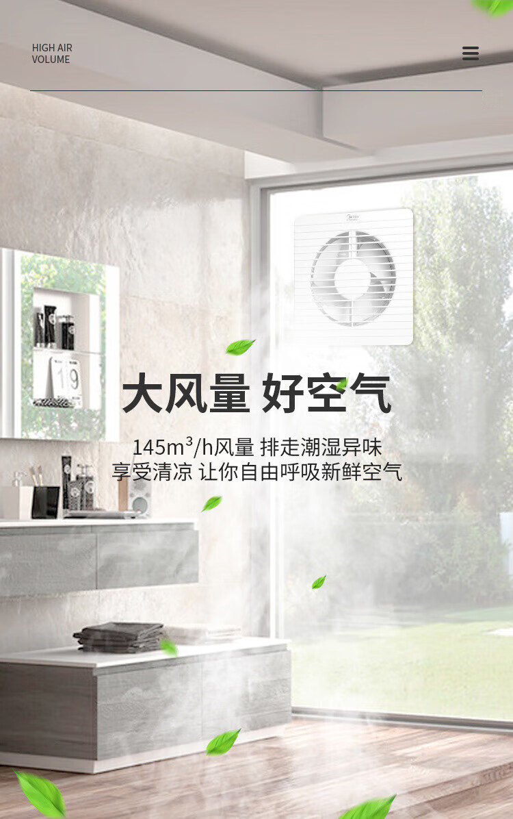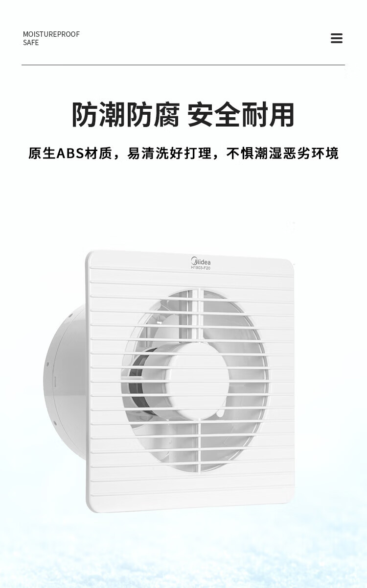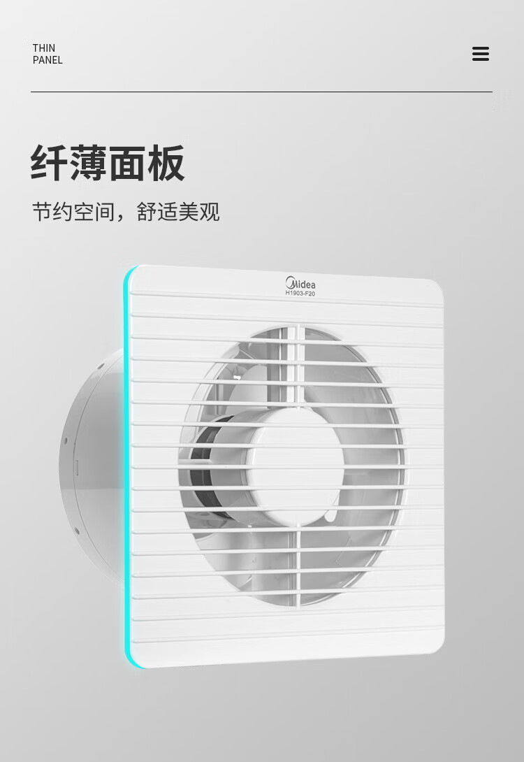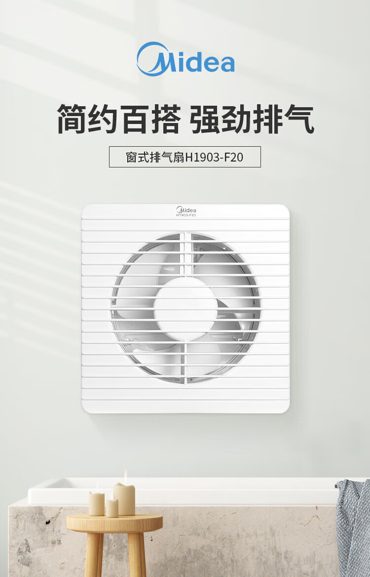 美的 Midea 排气扇 换气扇排厨房卫生间强力强劲换气排风扇 H1903-F20 台 白色
