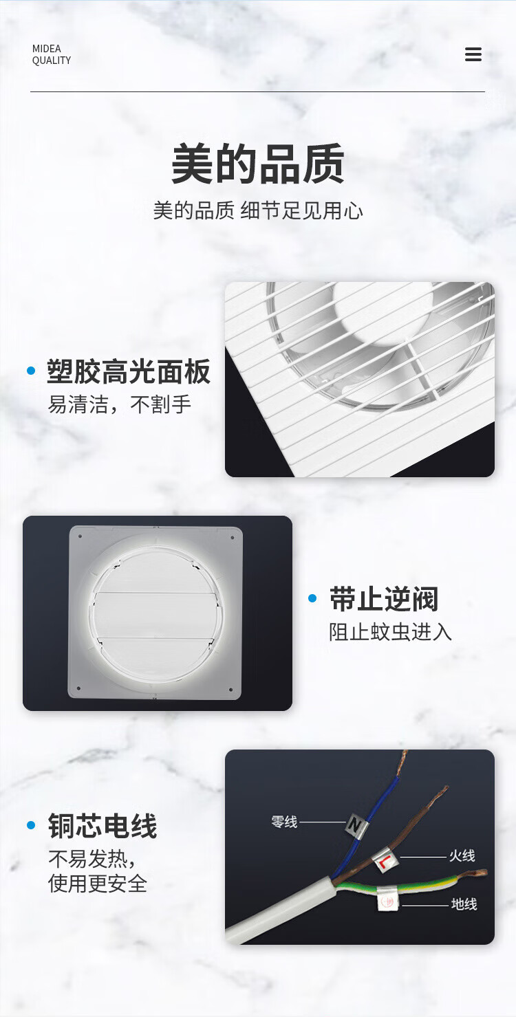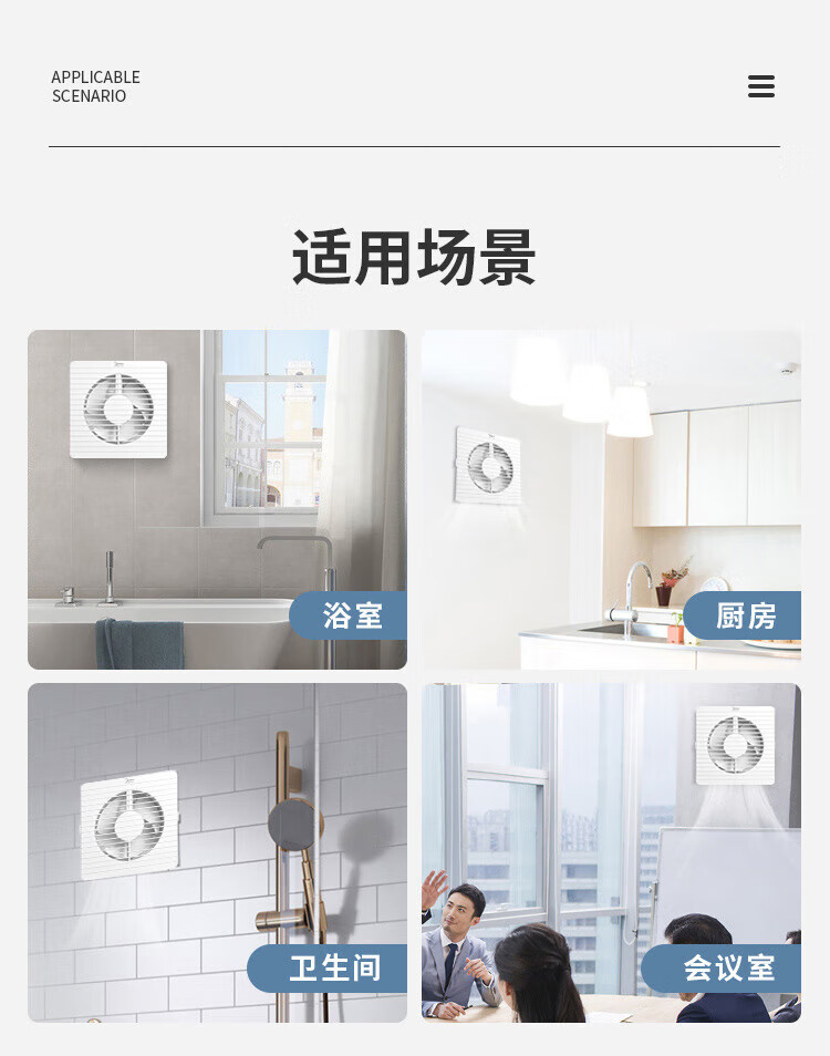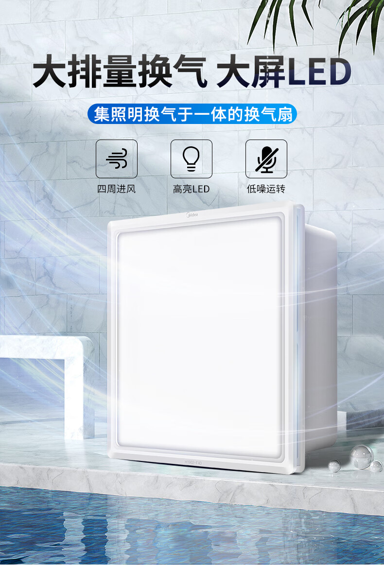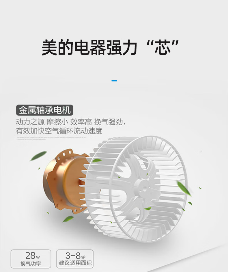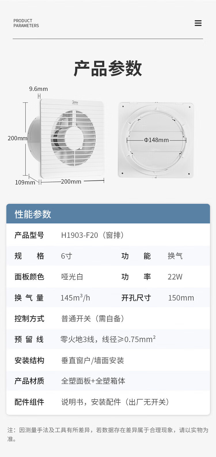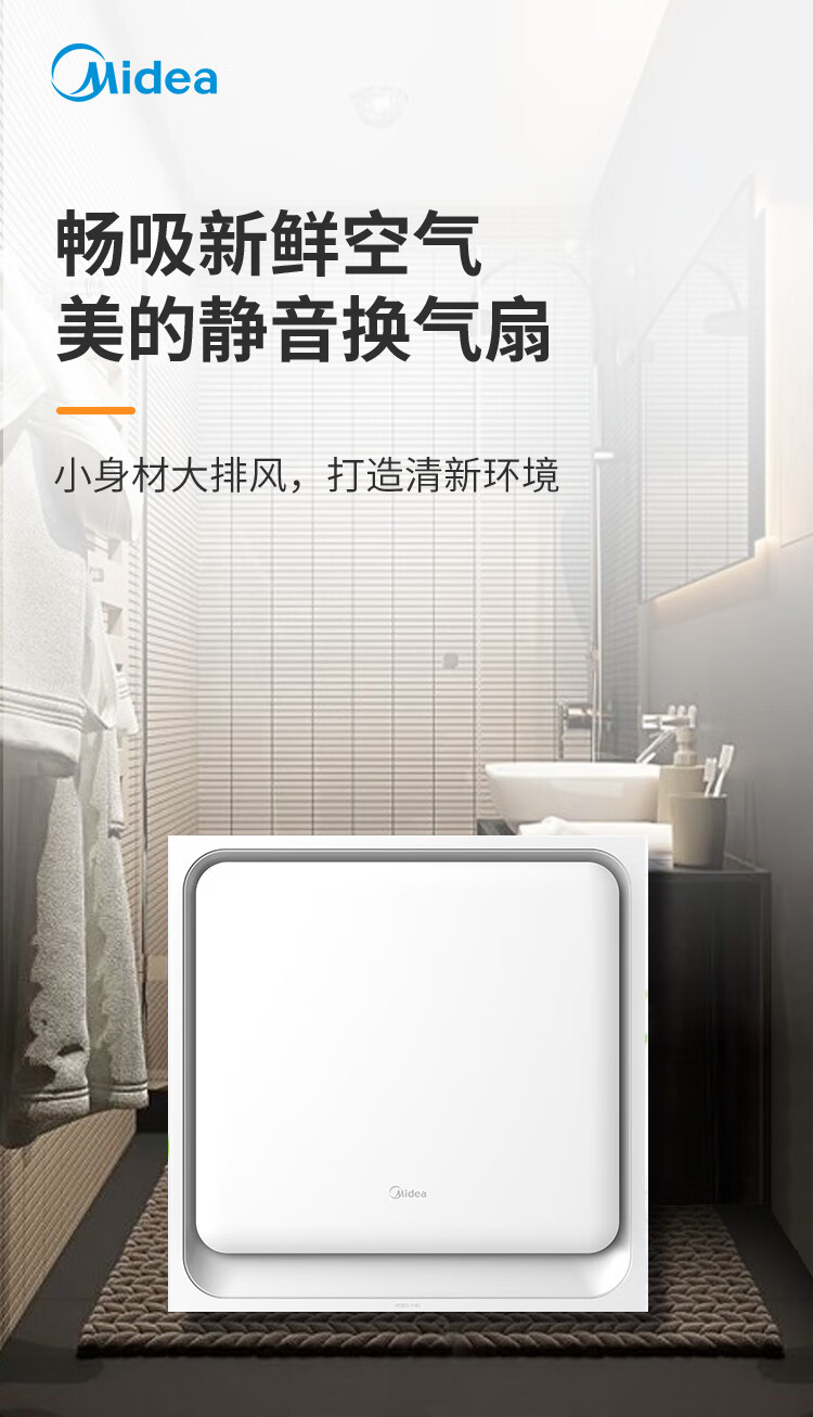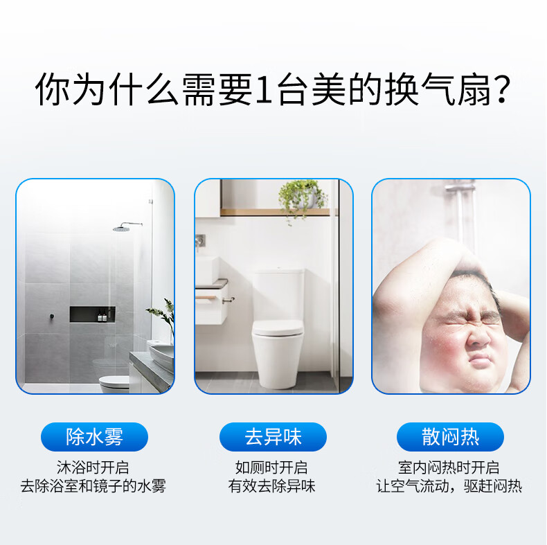 美的 Midea 排气扇 换气扇排厨房卫生间强力强劲换气排风扇 H1903-F20 台 白色