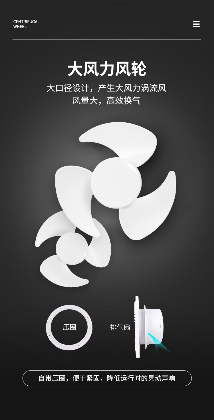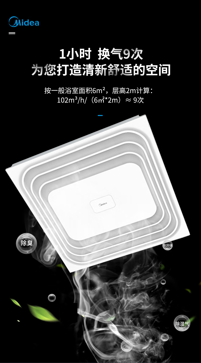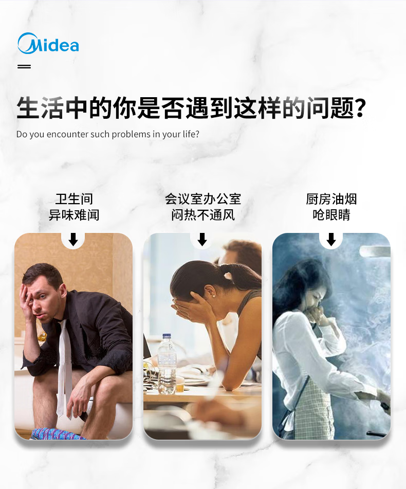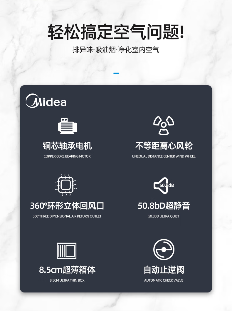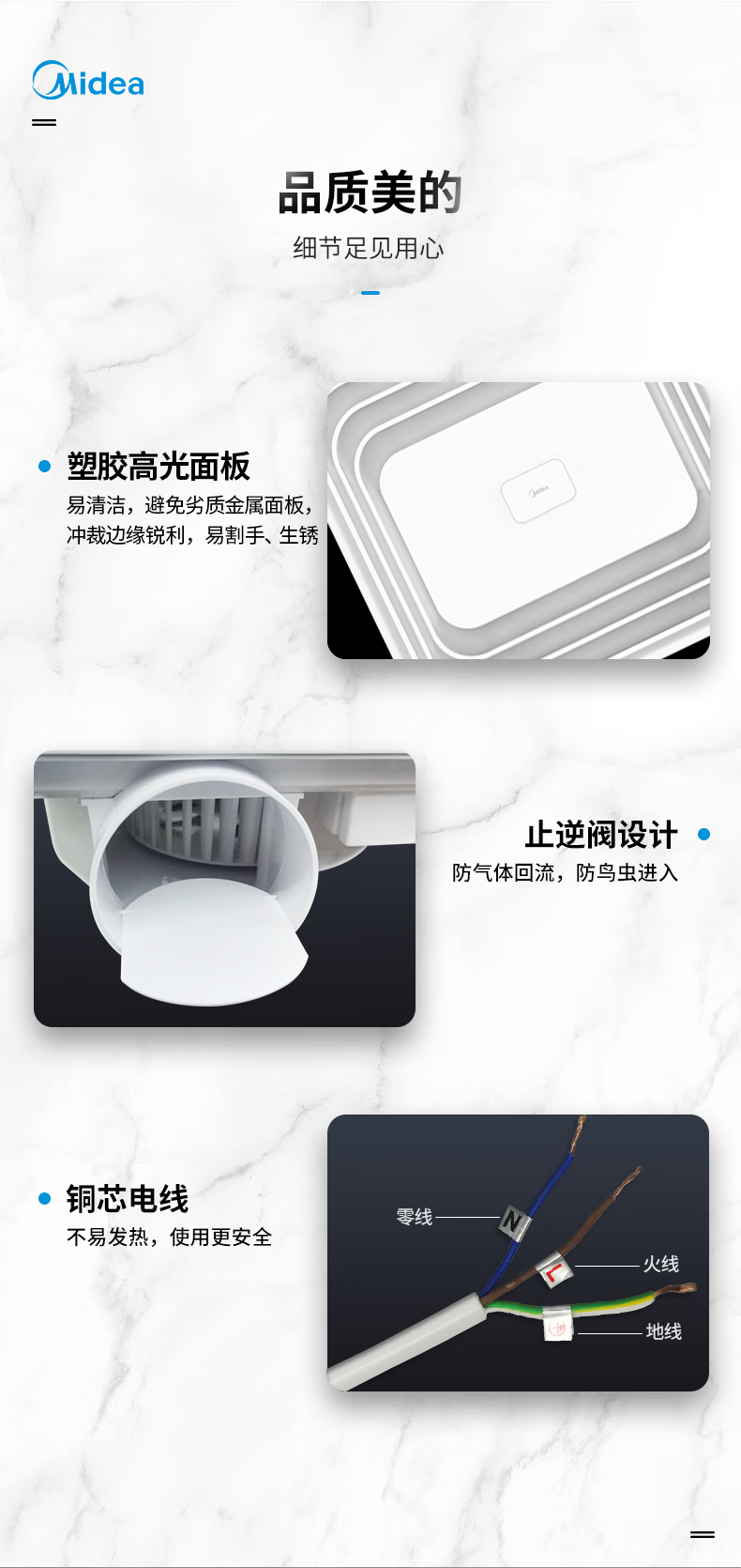 美的 Midea 排气扇 换气扇排厨房卫生间强力强劲换气排风扇 H1903-F20 台 白色