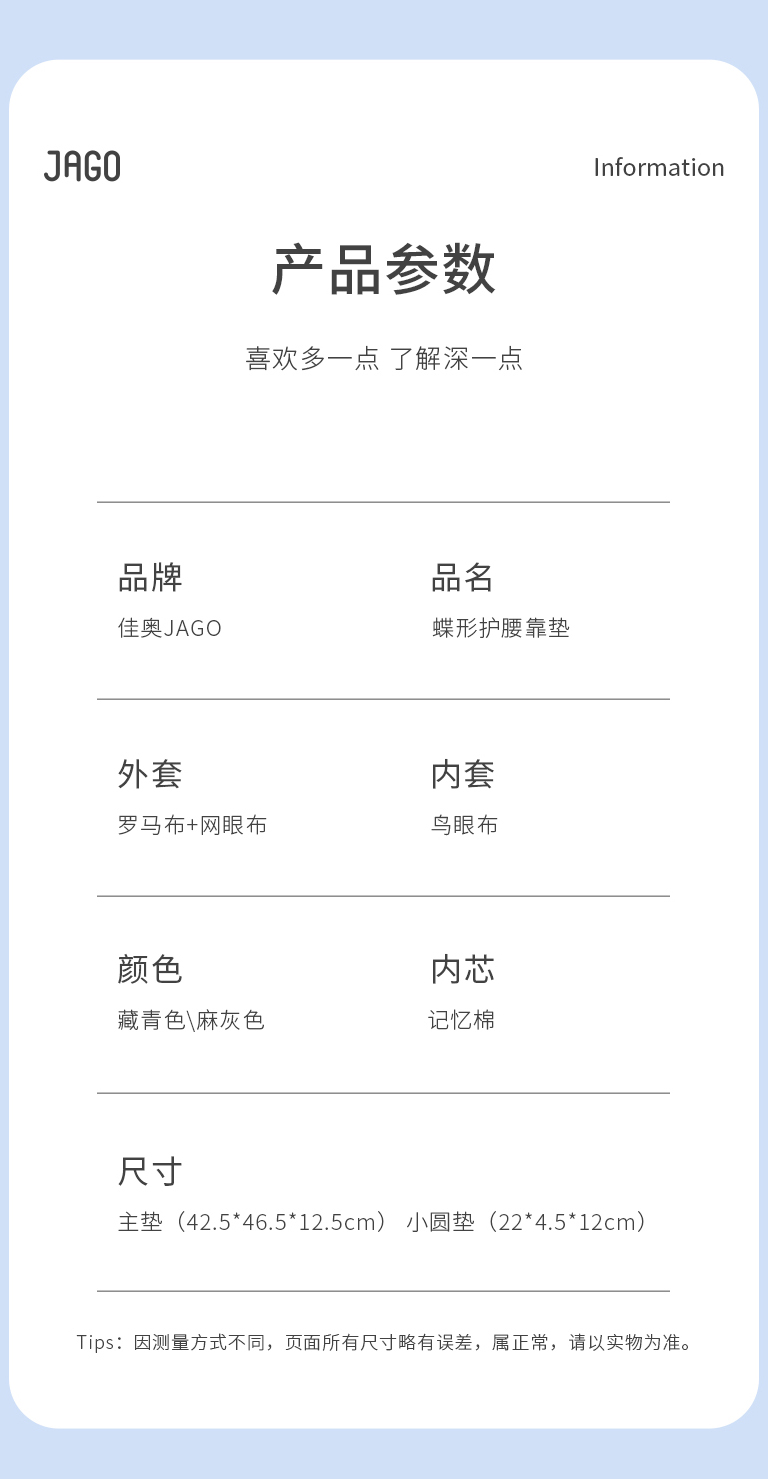 佳奥 基础款蝶形靠垫 单位:个 靠垫+坐垫套装蓝