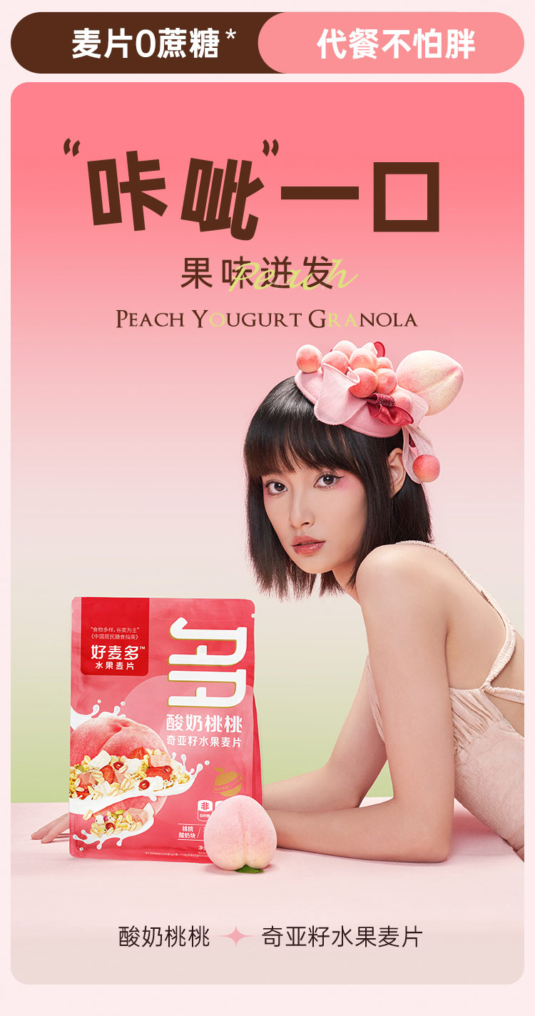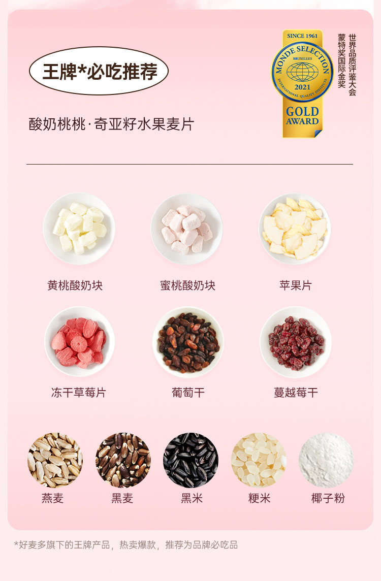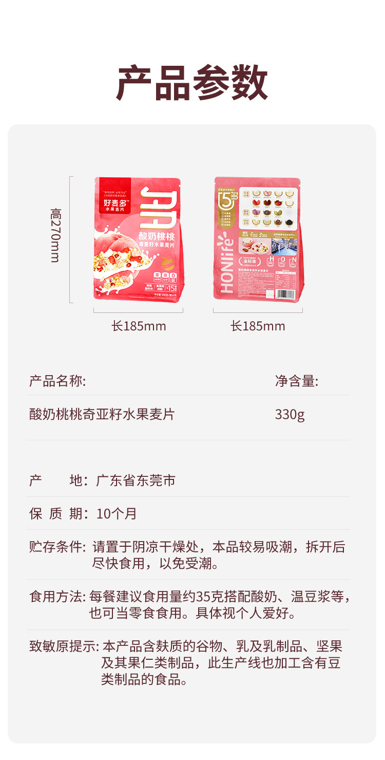 好麦多(HONlife)酸奶桃桃奇亚籽水果麦片330g (单位:袋) 粉色