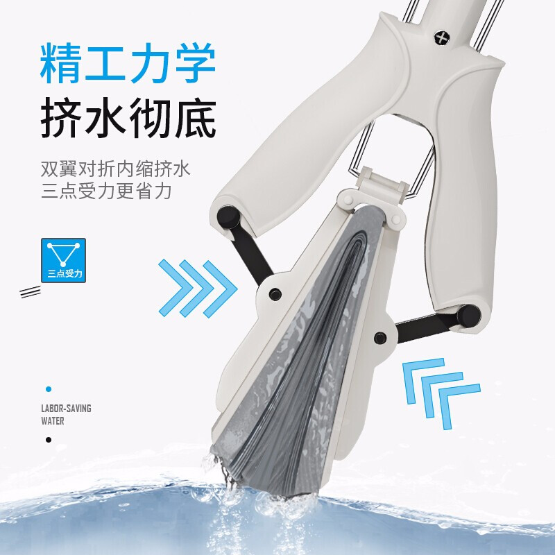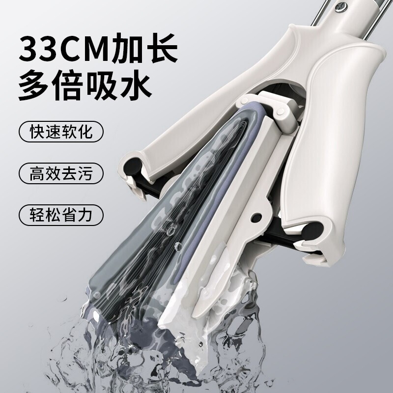 尔蓝 加长33cm对折式挤水可伸缩胶棉拖把吸水拖布干湿两用AL-JM02(单位:个) 钢琴白