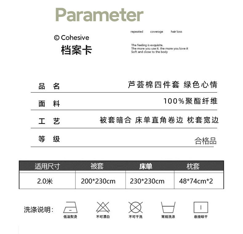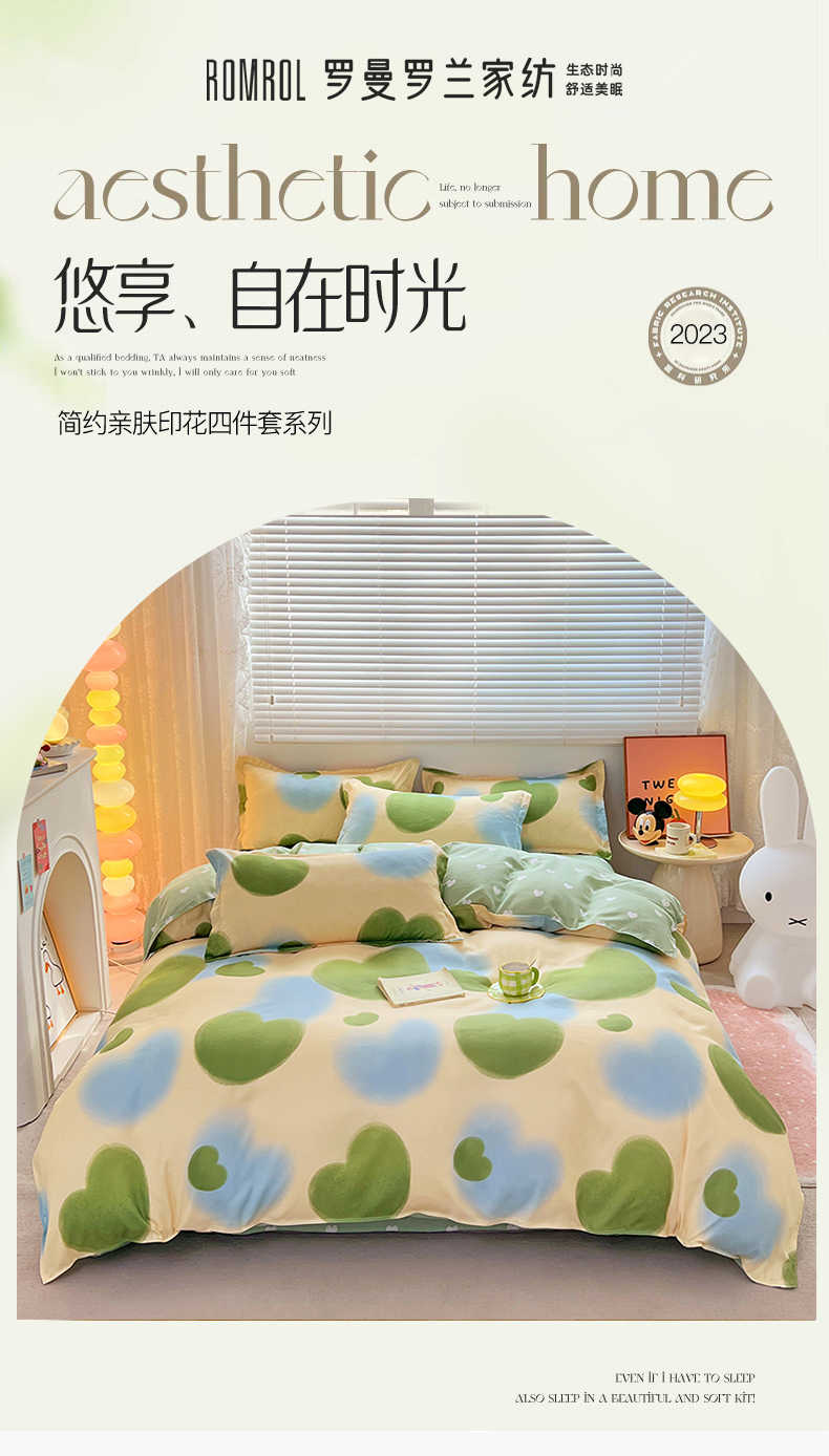 罗曼罗兰芦荟棉四件套 绿色心情200*230cm(单位:套) 绿色