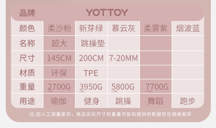 YOTTOY 明星系列双人瑜伽垫 145*200cm 单位:件 紫色
