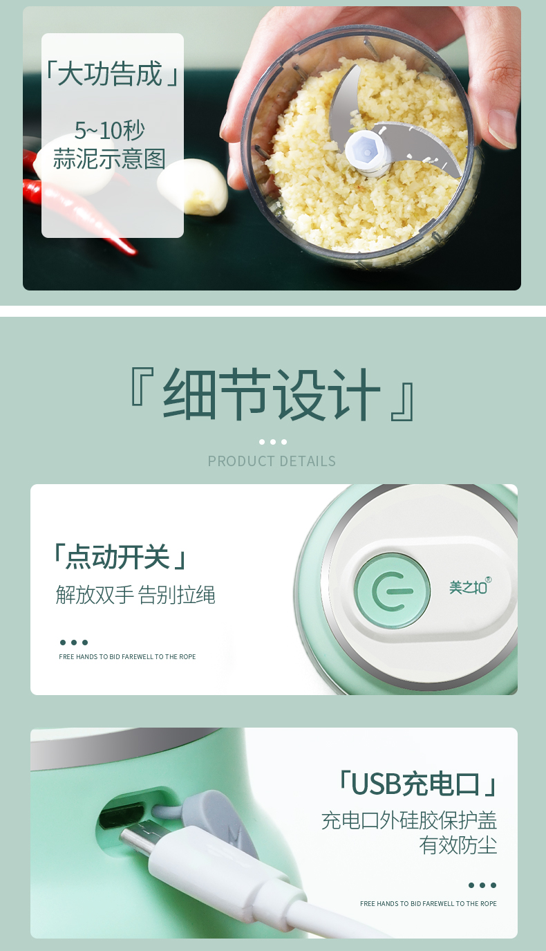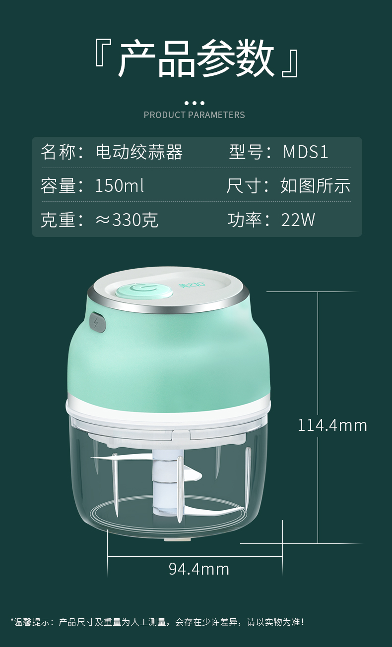 美之扣电动蒜泥器MDS1 150ml(单位:台) 白绿色