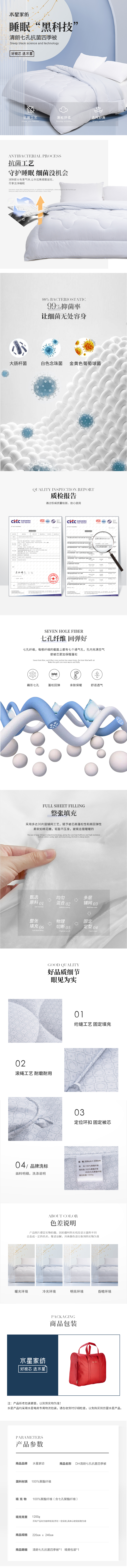 水星家纺 清朗七孔抗菌被1.8m床 220cm×240cm 单位:床 白色