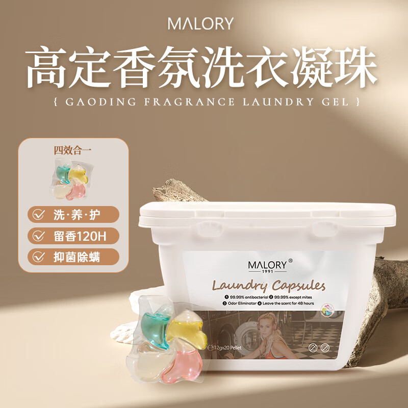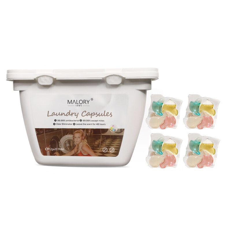 MALORY澳洲进口Y洗衣凝珠四合一20颗 持久留香除菌除螨(单位:盒) 本白色