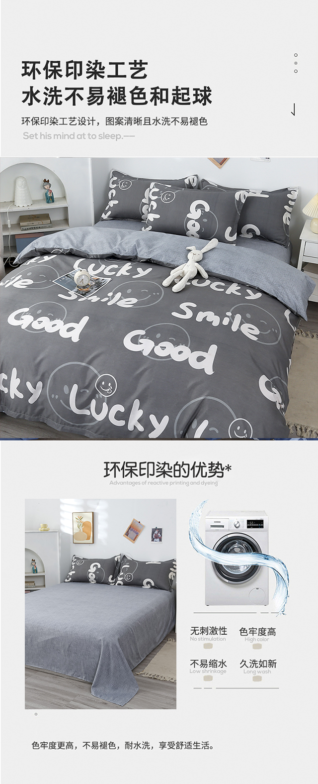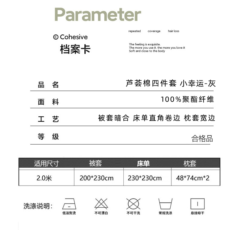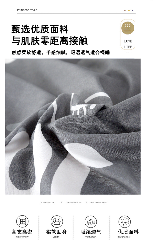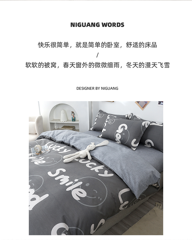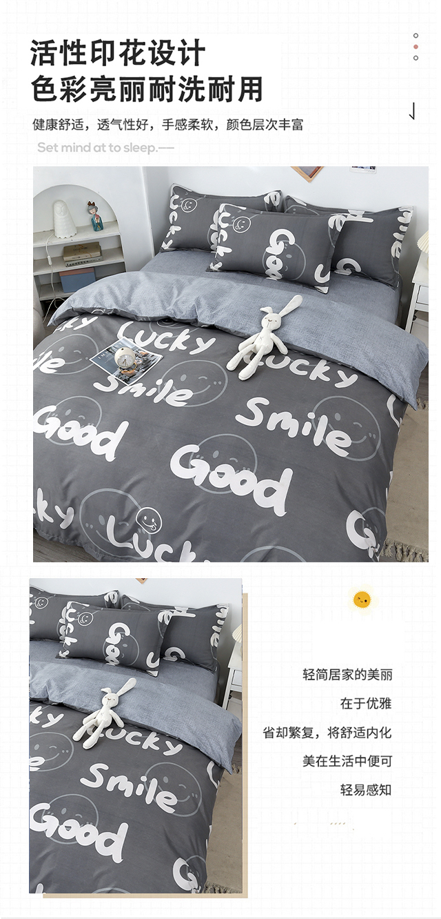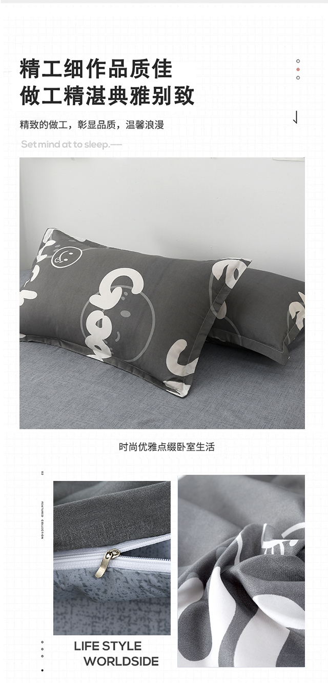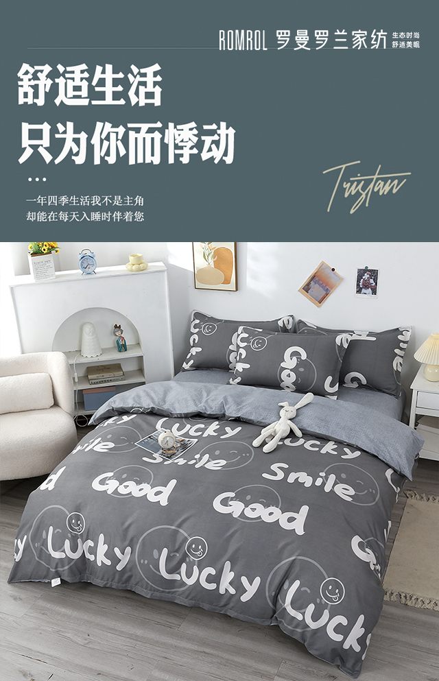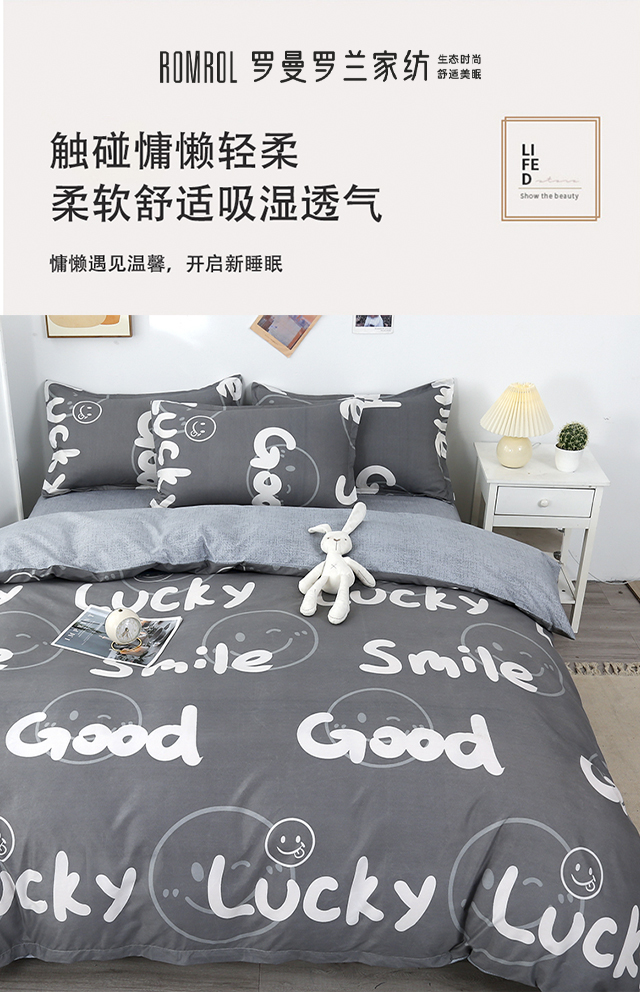 罗曼罗兰芦荟棉四件套 小幸运200*230cm(单位:套) 灰色