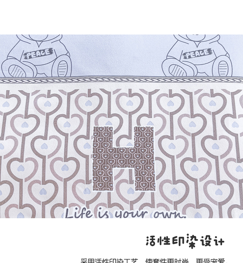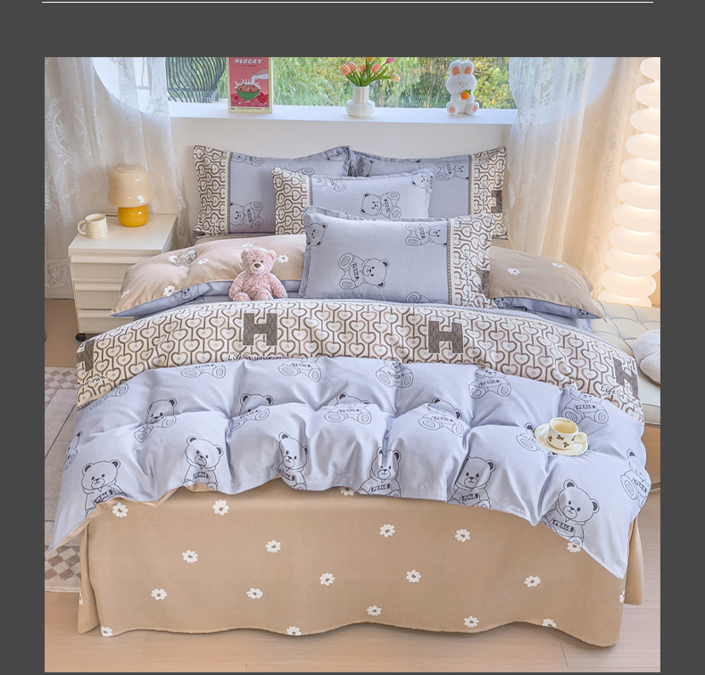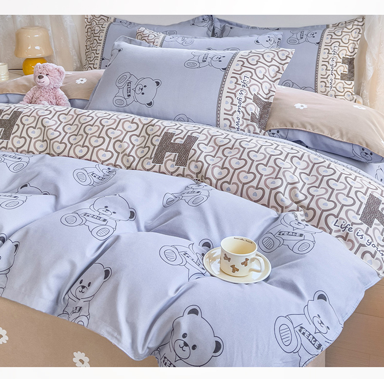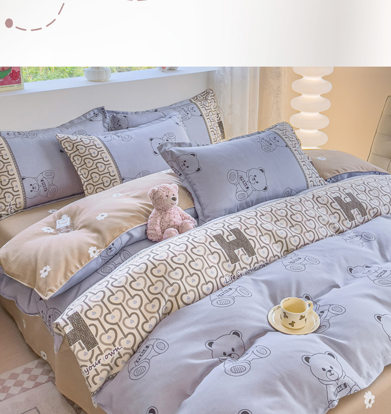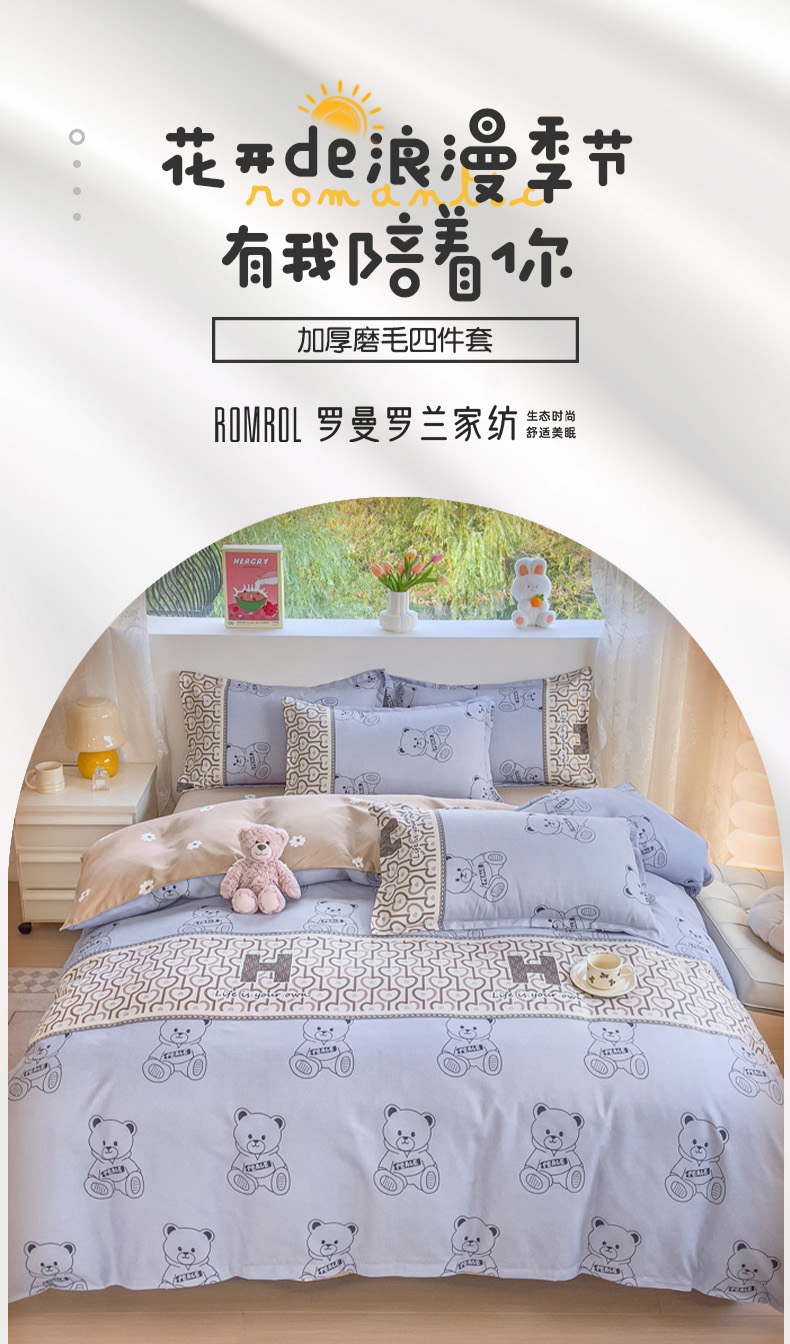 罗曼罗兰加厚磨毛印花四件套 嘟嘟熊200*230cm(单位:套) 珍珠灰