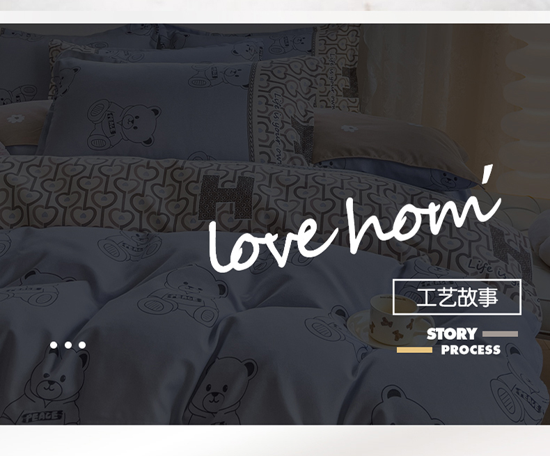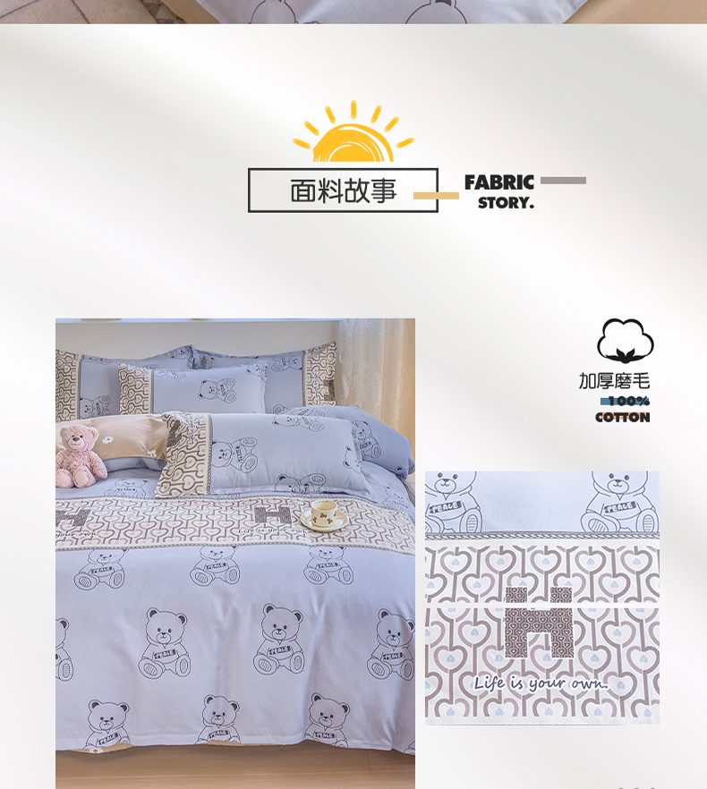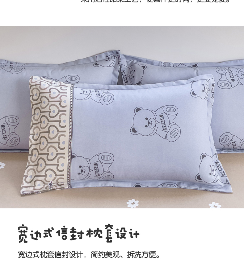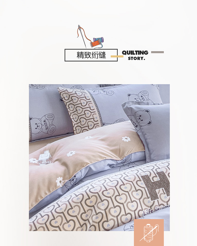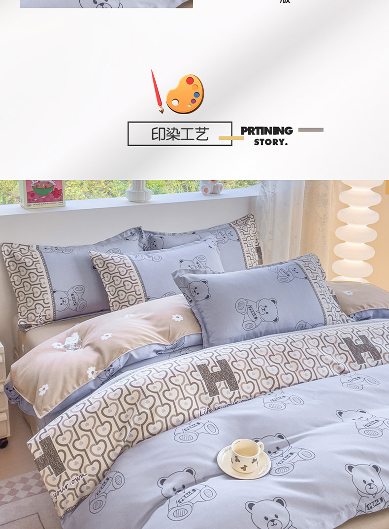 罗曼罗兰加厚磨毛印花四件套 嘟嘟熊200*230cm(单位:套) 珍珠灰