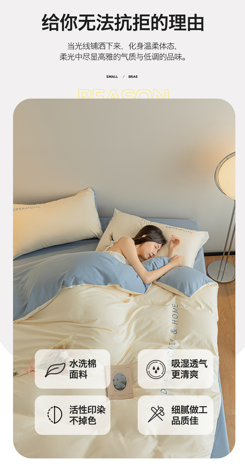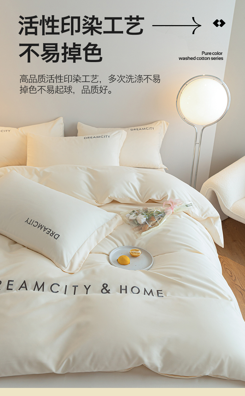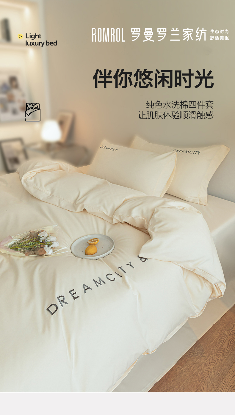 罗曼罗兰水洗磨毛四件套 奥利200*230cm(单位:套) 奶昔白 200*230cm