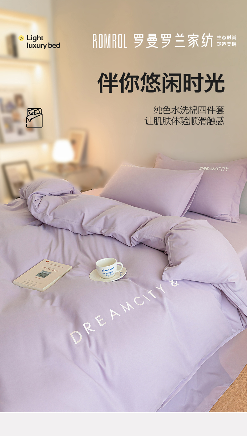 罗曼罗兰水洗磨毛四件套 奥利200*230cm(单位:套) 浅紫