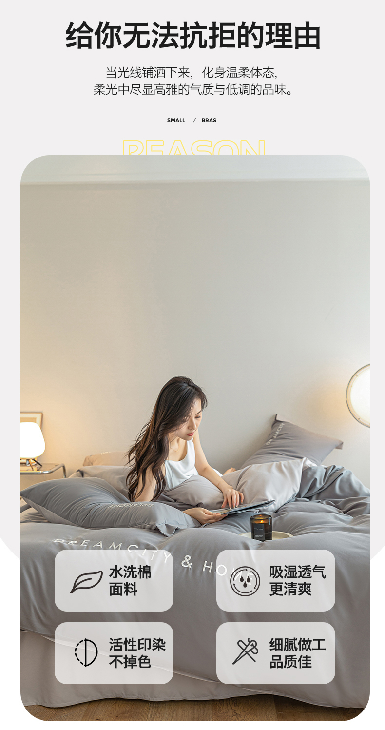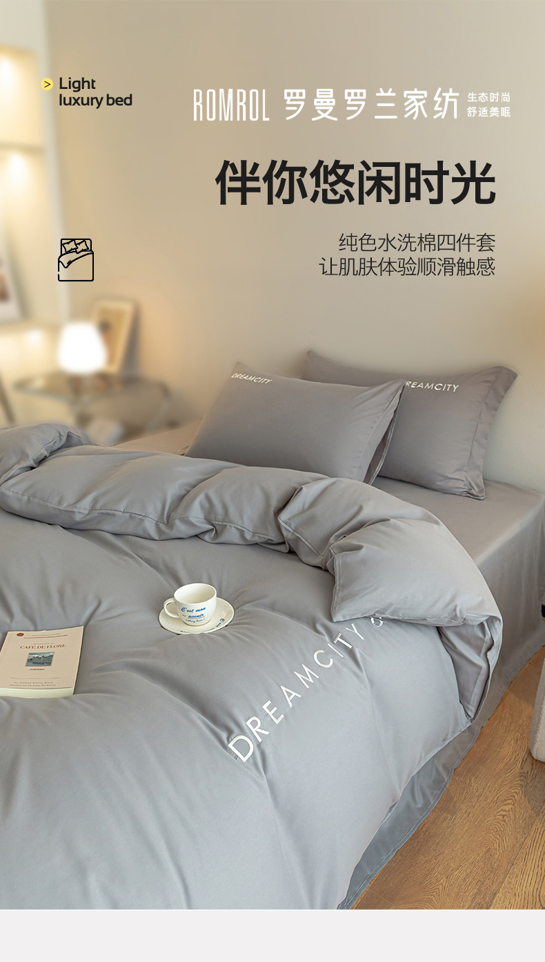罗马罗兰水洗磨毛四件套 奥利200*230cm(单位:套) 中灰