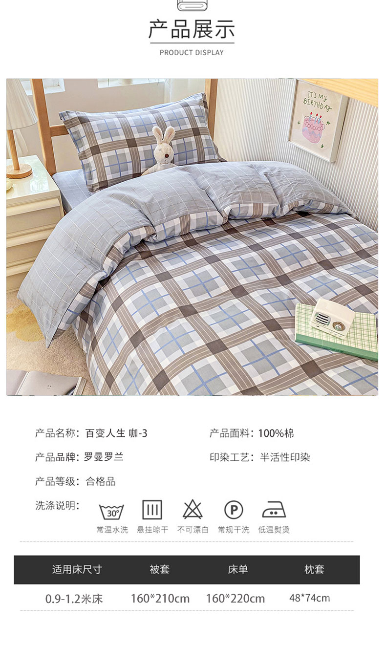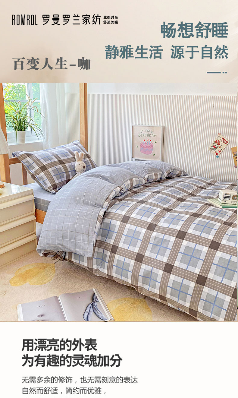 罗曼罗兰全棉三件套 百变生活160x210cm(单位:套) 咖色 1.2米