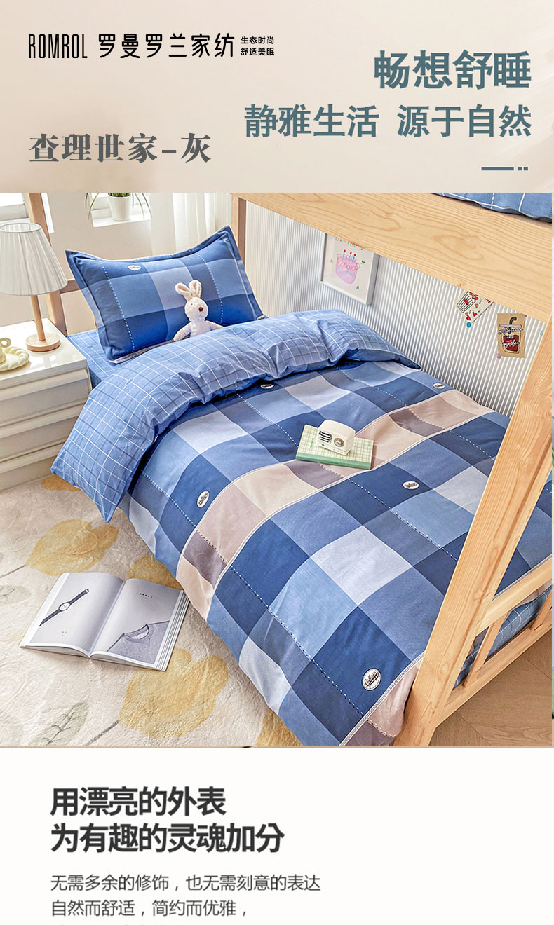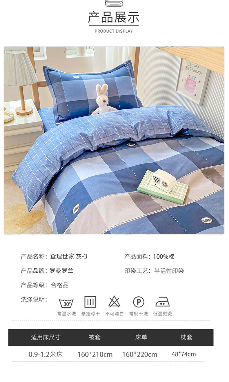 罗曼罗兰全棉三件套 查里世家160x210cm(单位:套) 灰色 1.2米