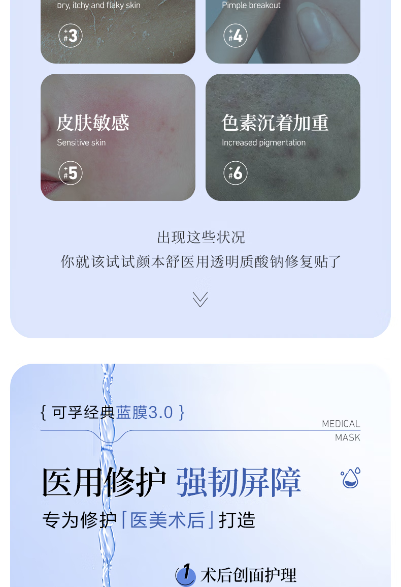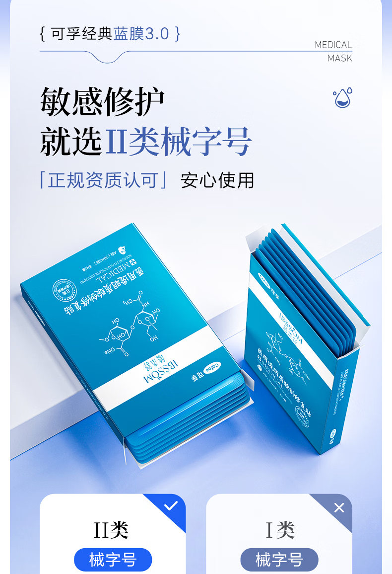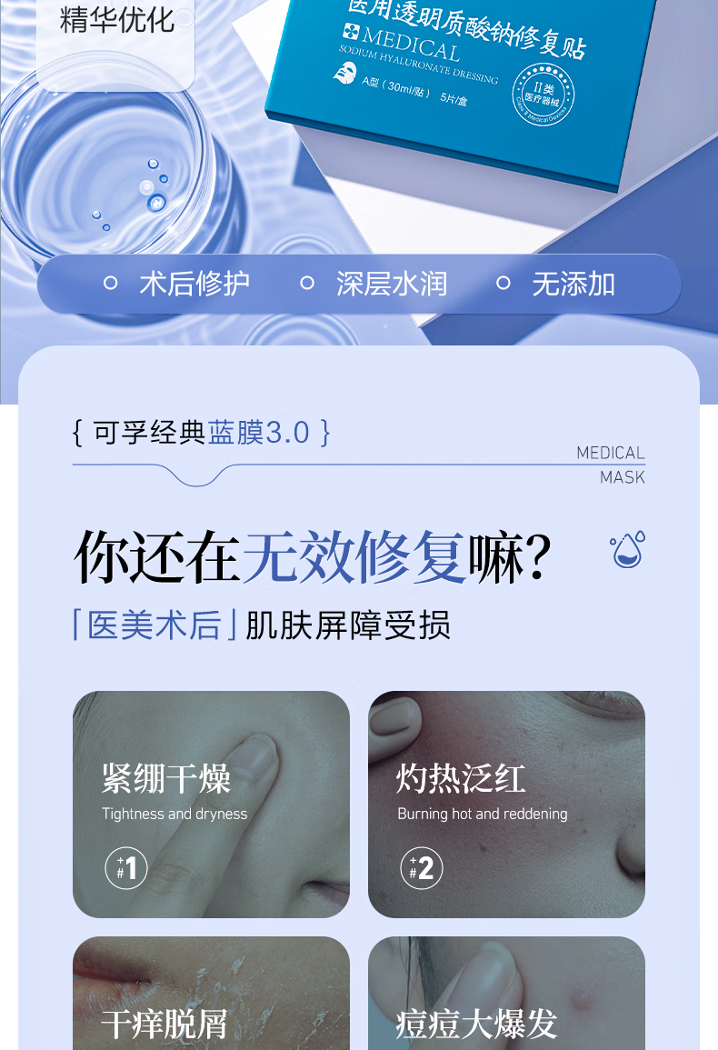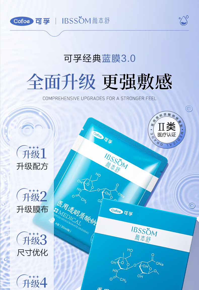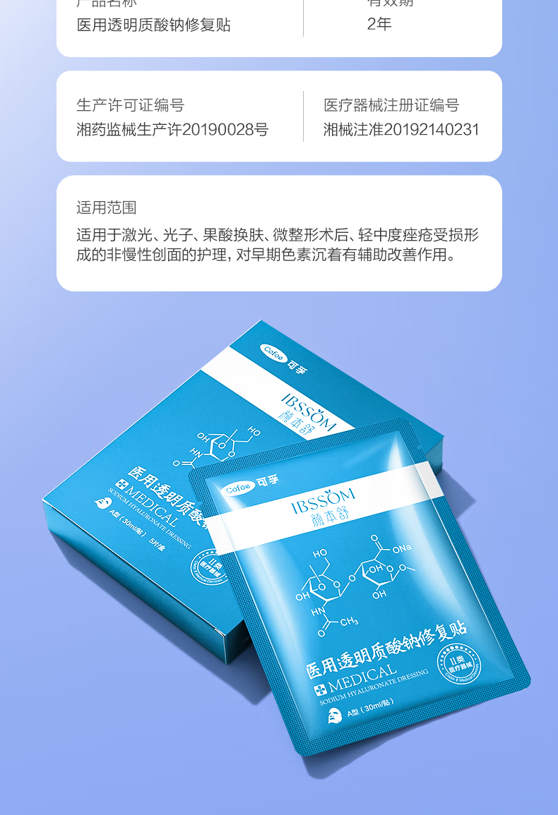 可孚医用透明质酸钠修复贴 A型(30ml/贴)-5片装 5片/盒*10盒 蓝色