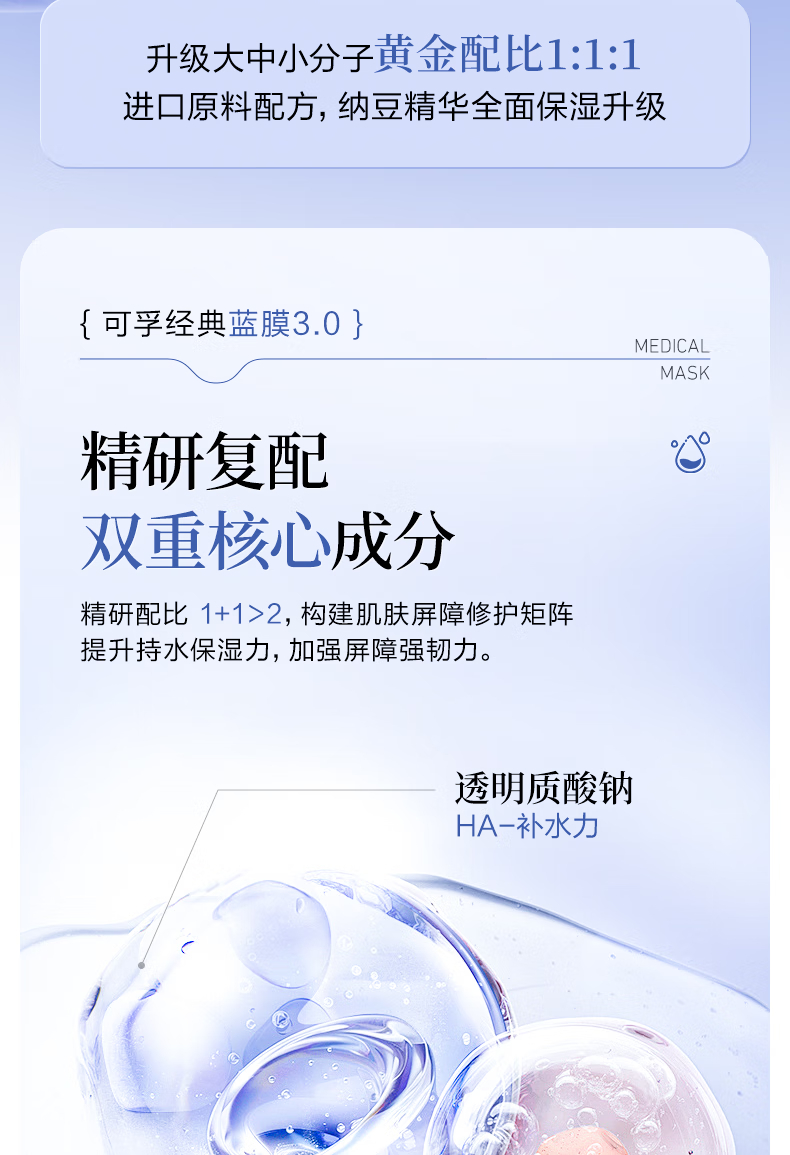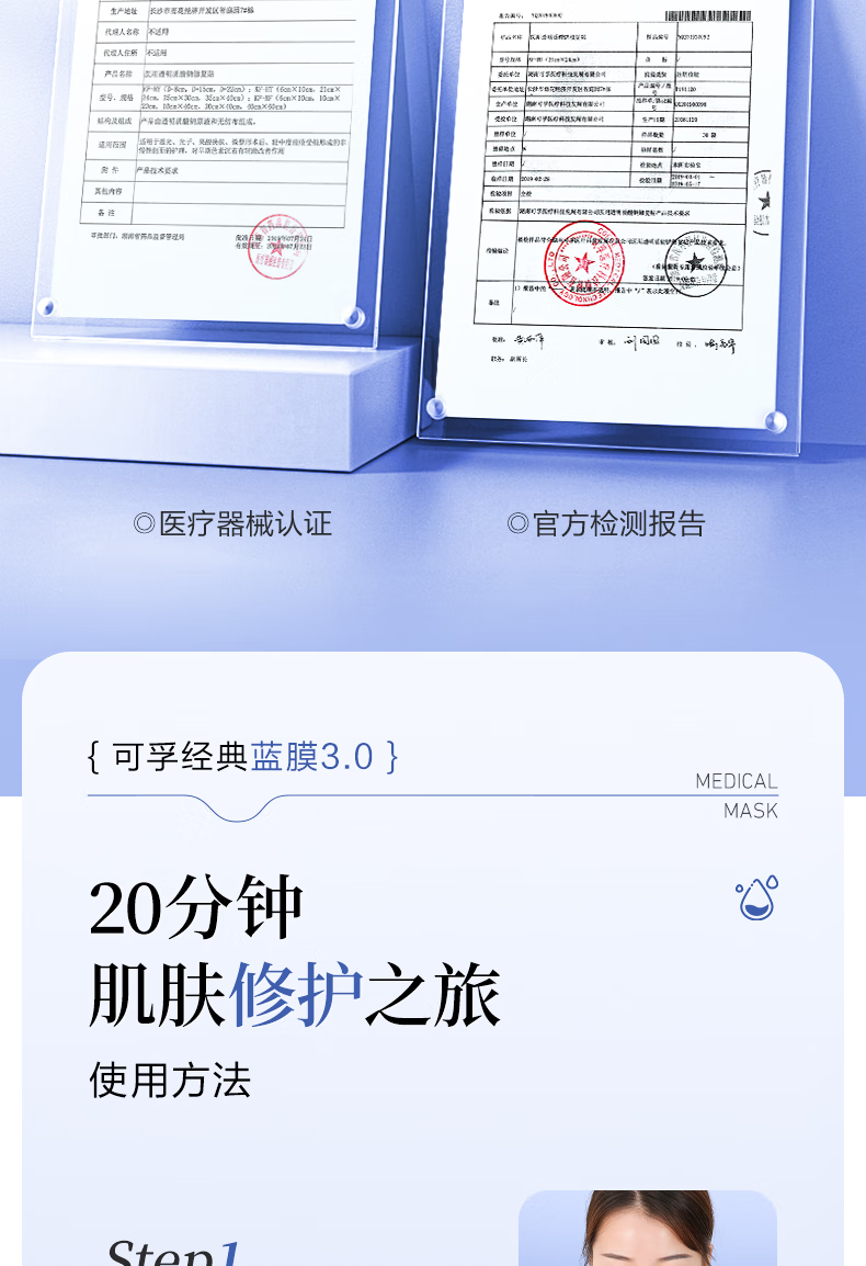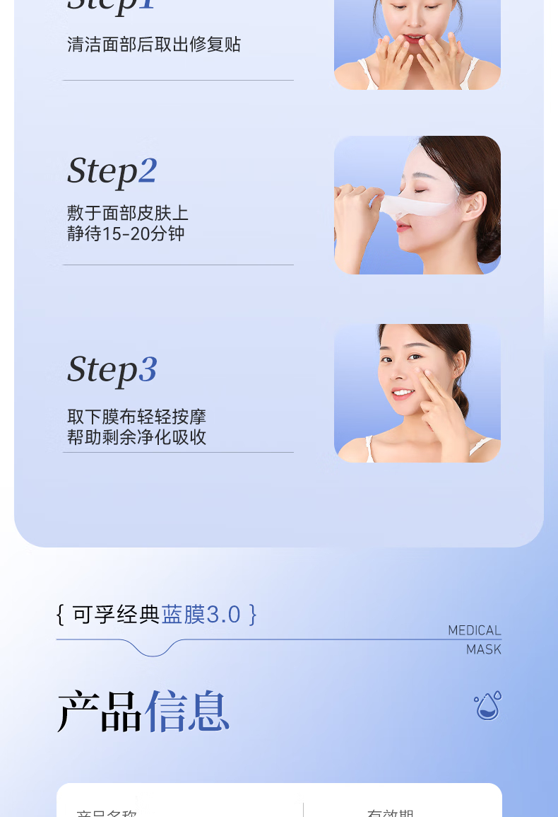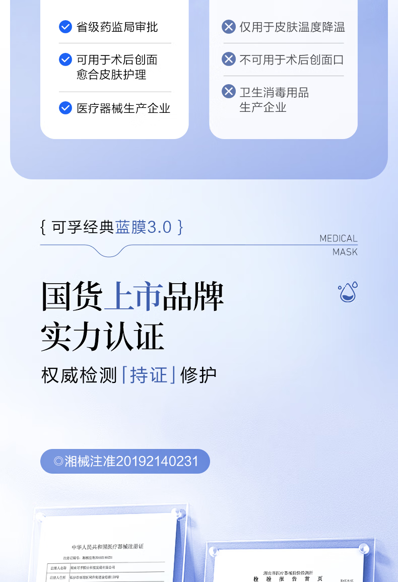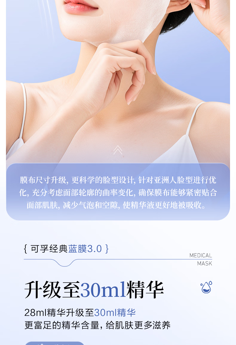 可孚医用透明质酸钠修复贴 A型(30ml/贴)-5片装 5片/盒*10盒 蓝色