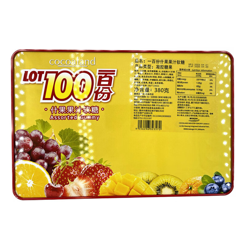 一百份什果果汁软糖380g 单位:盒 一百份什果果汁软糖380g