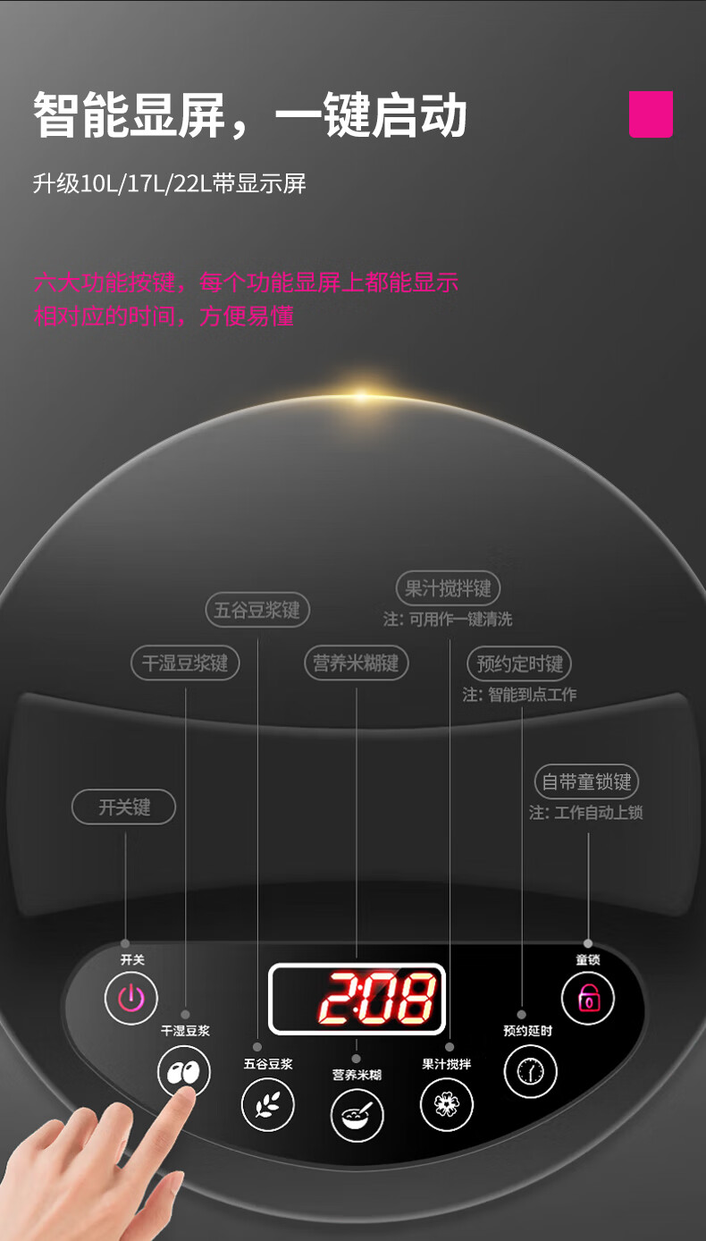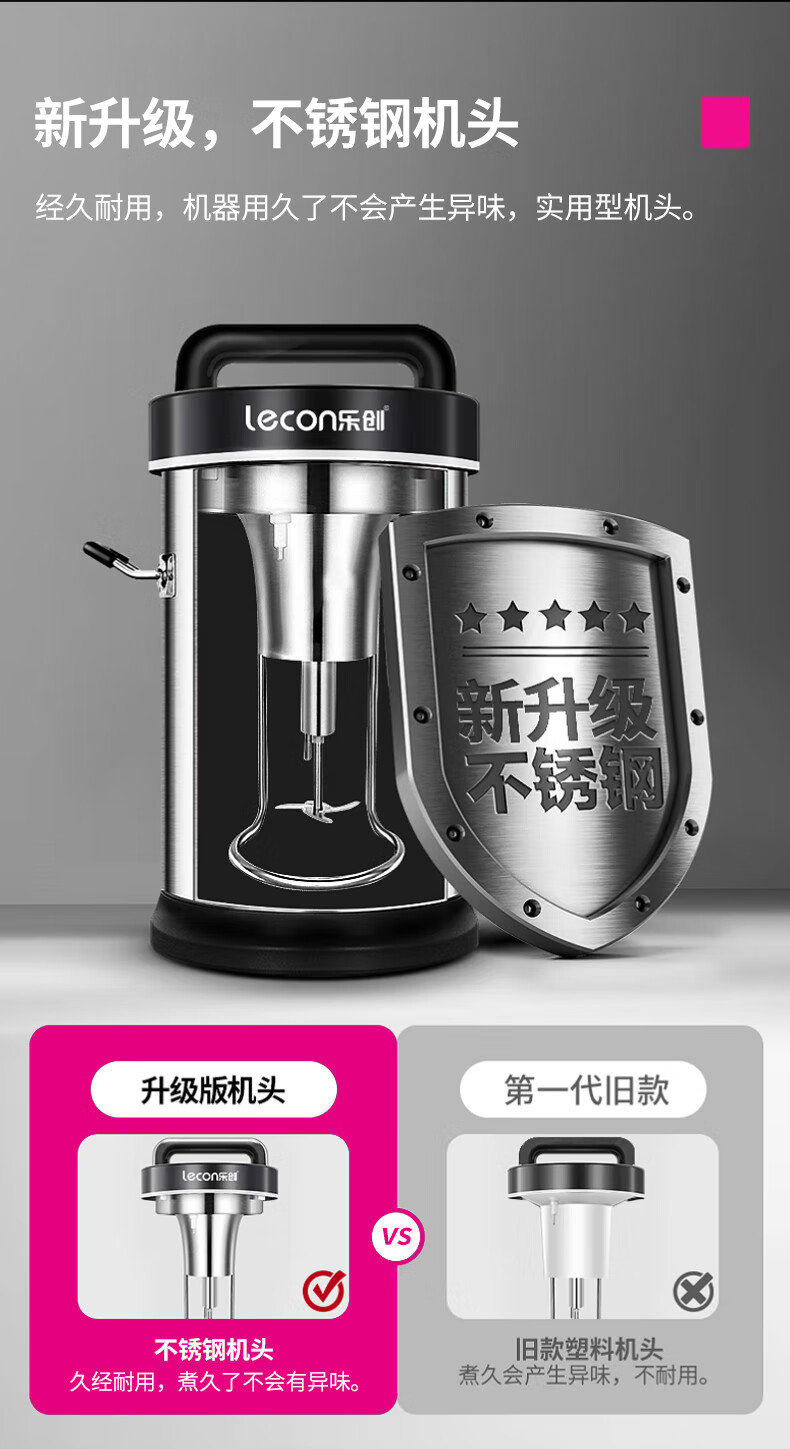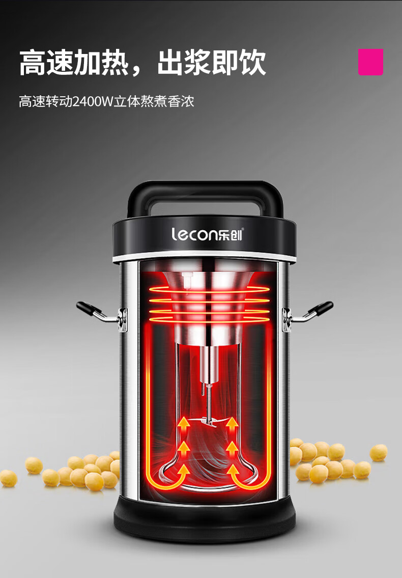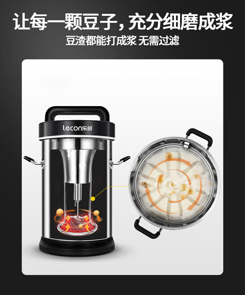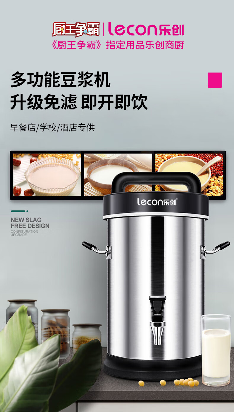 乐创(lecon)豆浆机商用全自动磨浆机无渣免过滤米糊杂粮打浆机 10L可打50杯 DX-32C 台 不锈钢色