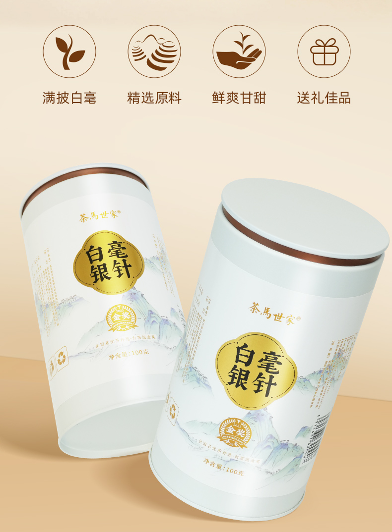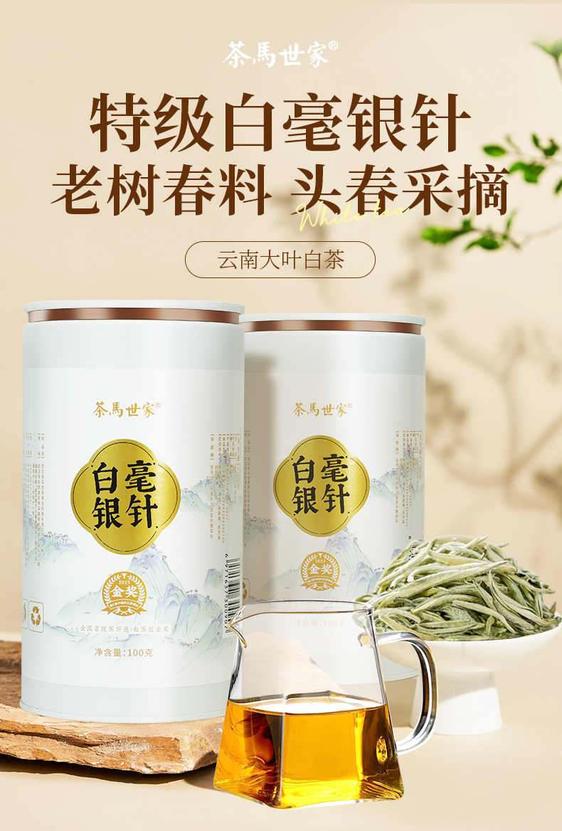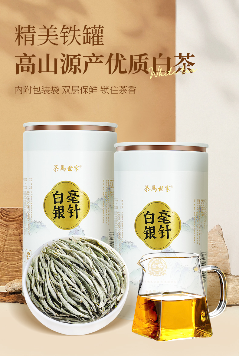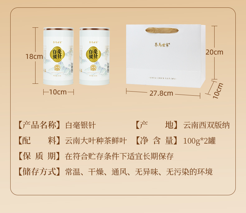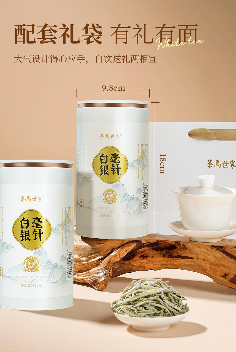 茶马世家 云南白毫银针200g 礼盒装(双罐+礼袋)+公道杯 白色