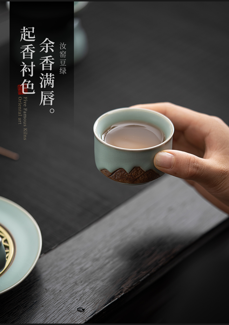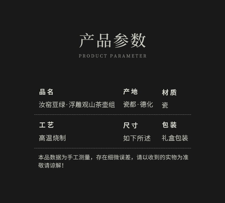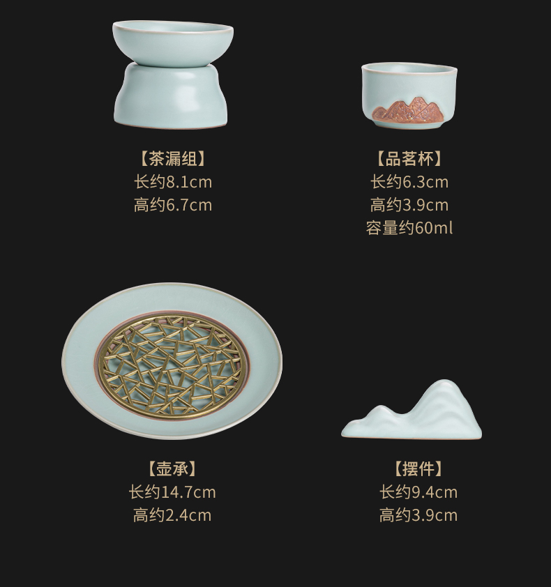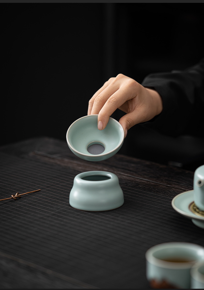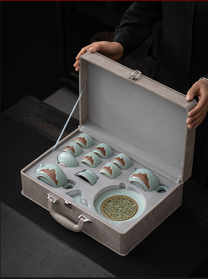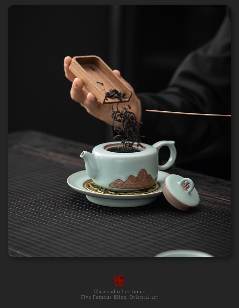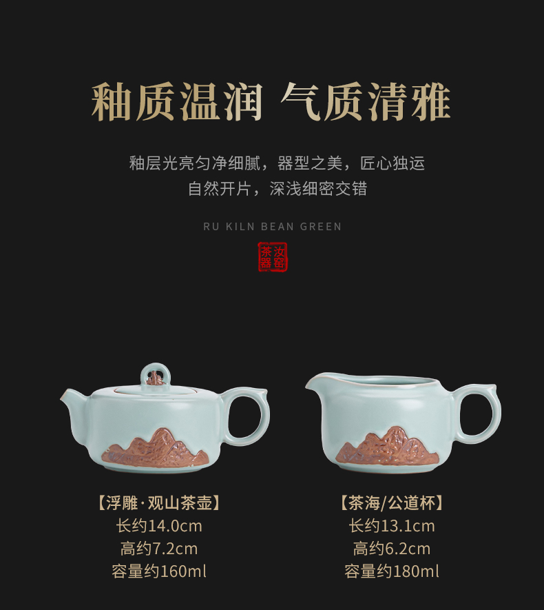 苏氏陶瓷(SUSHI CERAMICS)J0903整套茶具汝窑浮雕山行泡茶壶(单位:套) 水蓝色