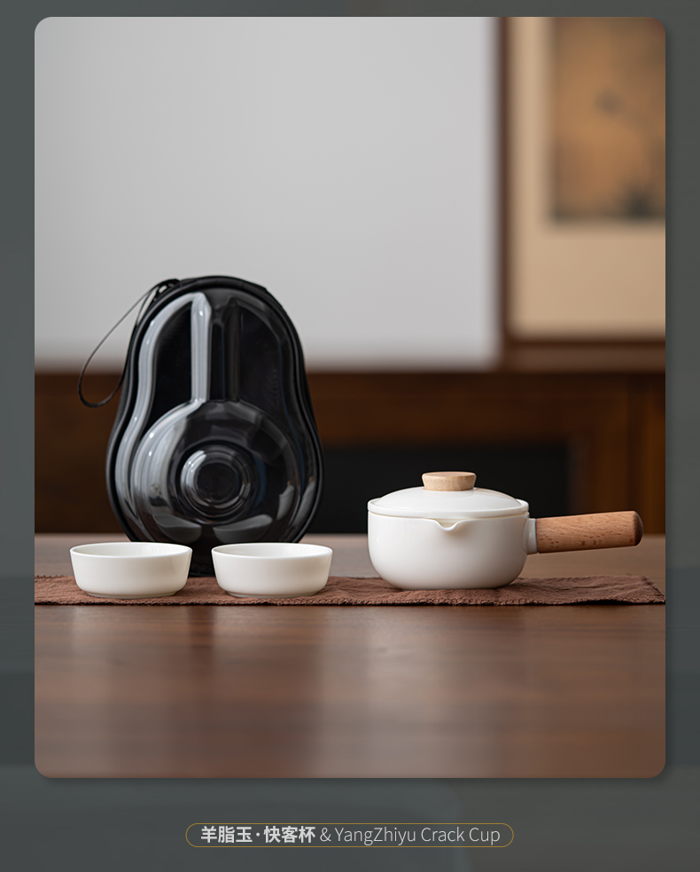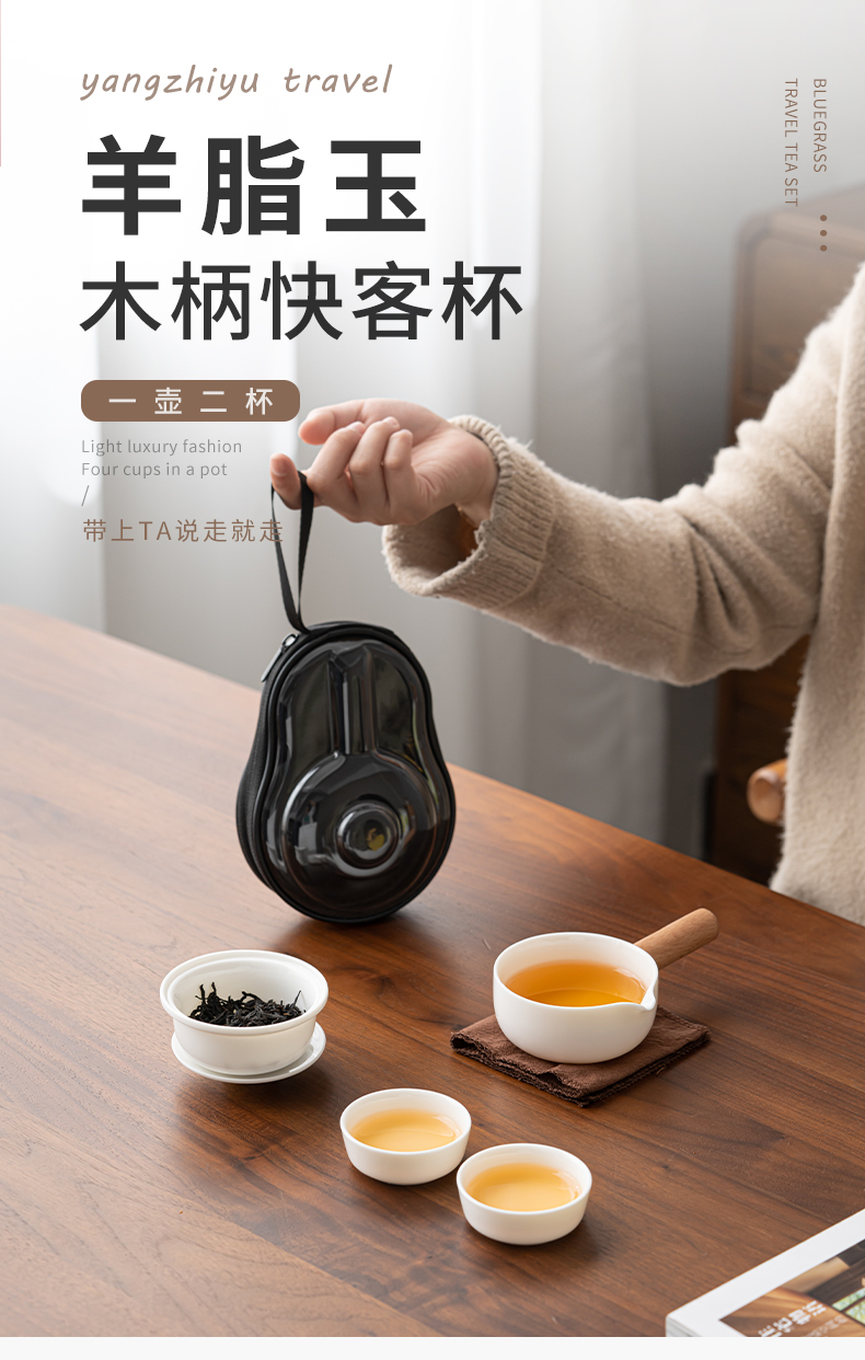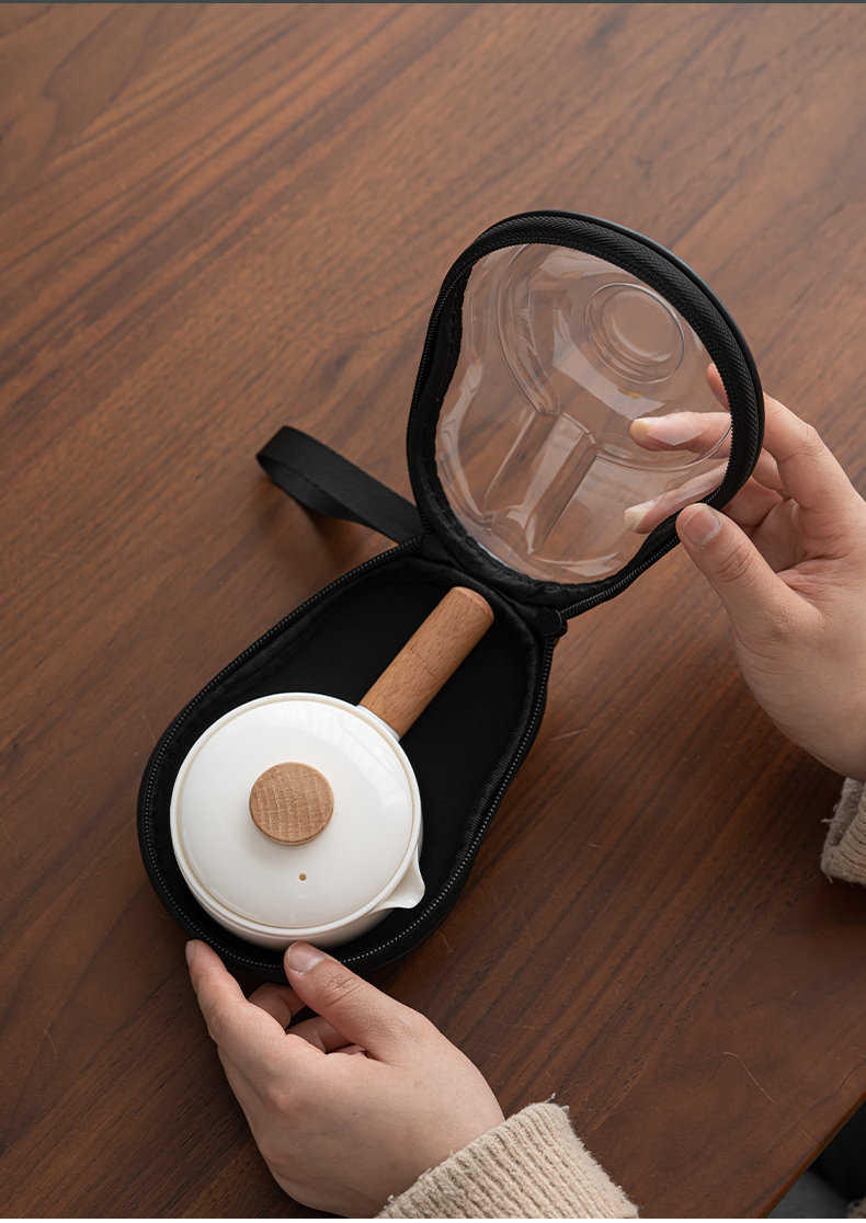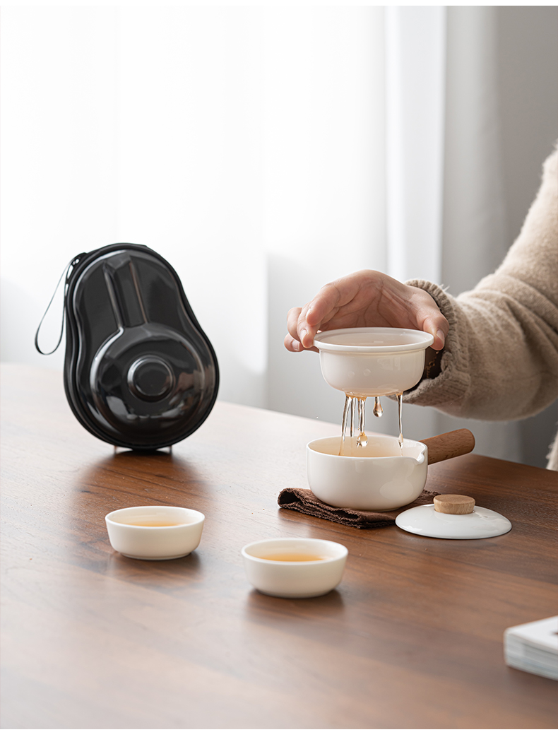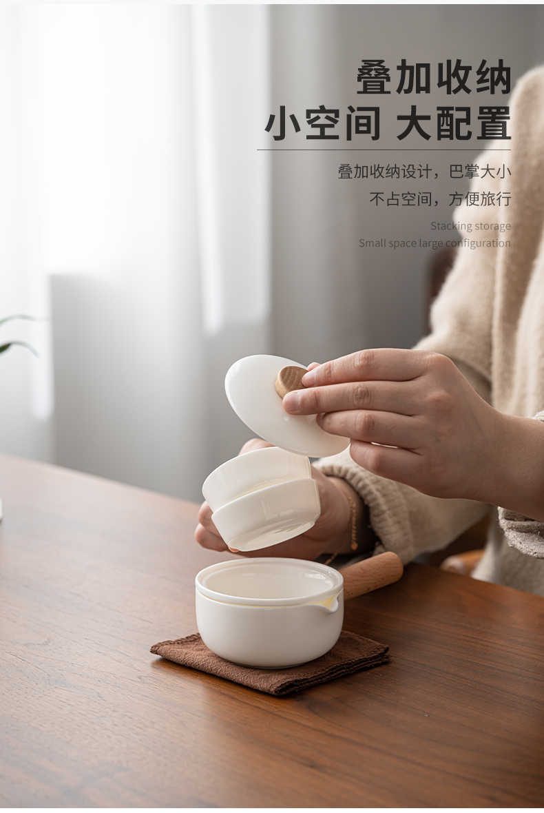 苏氏陶瓷(SUSHI CERAMICS)J0906旅行茶具木柄侧把壶快客杯便捷装(单位:套) 白色