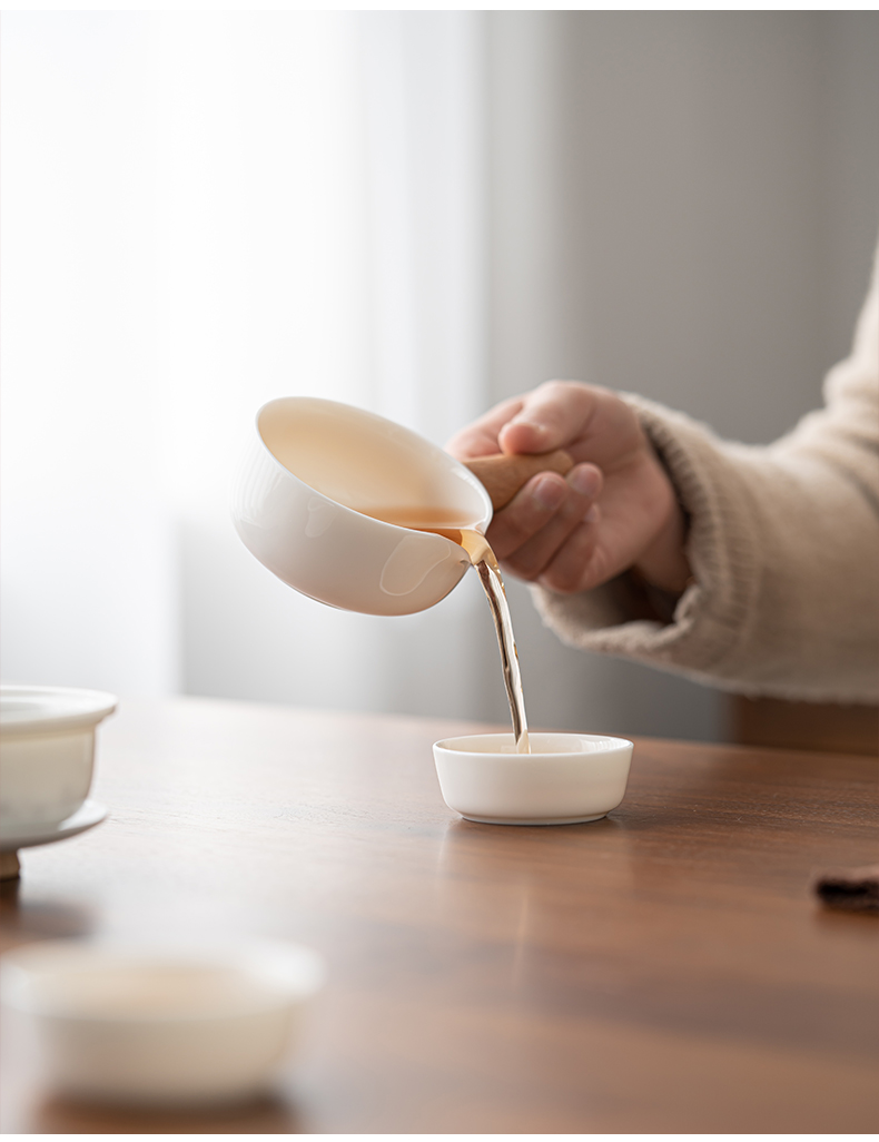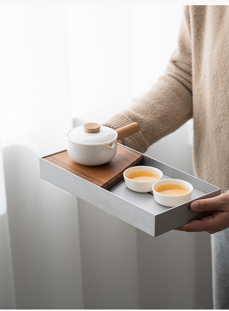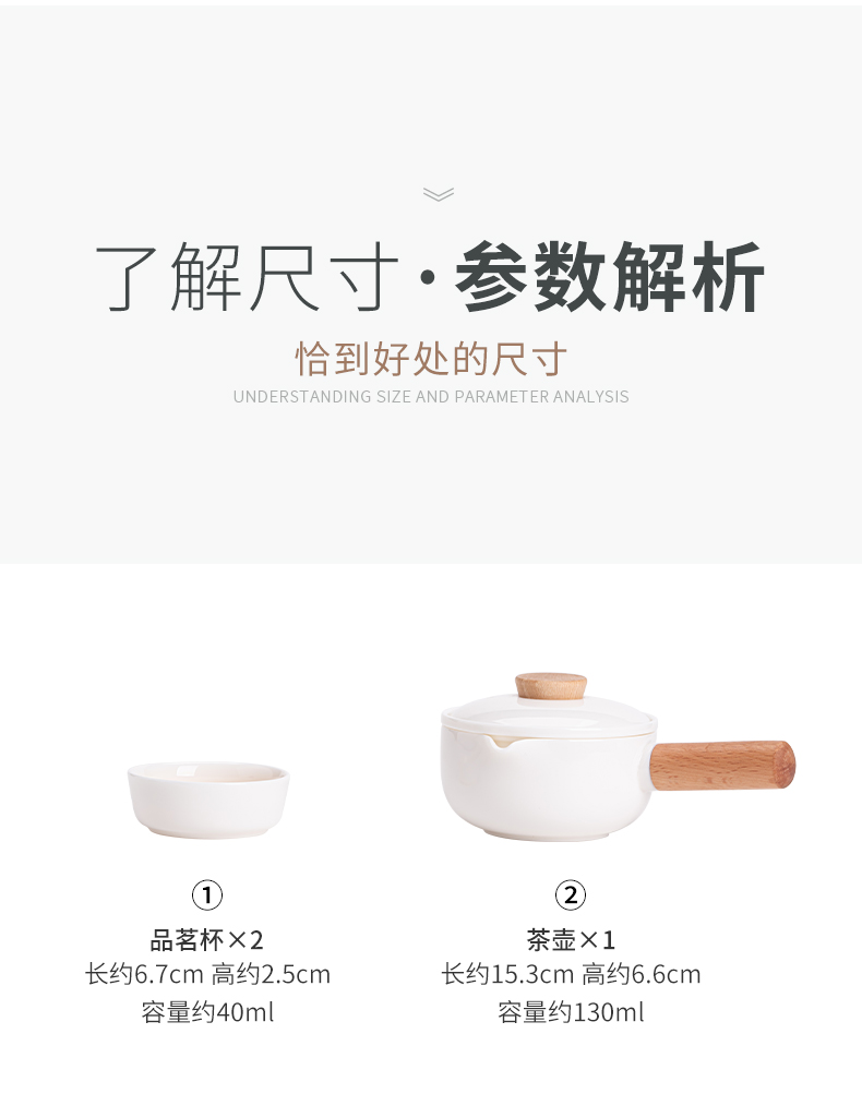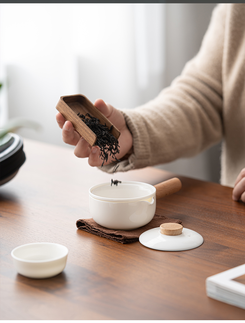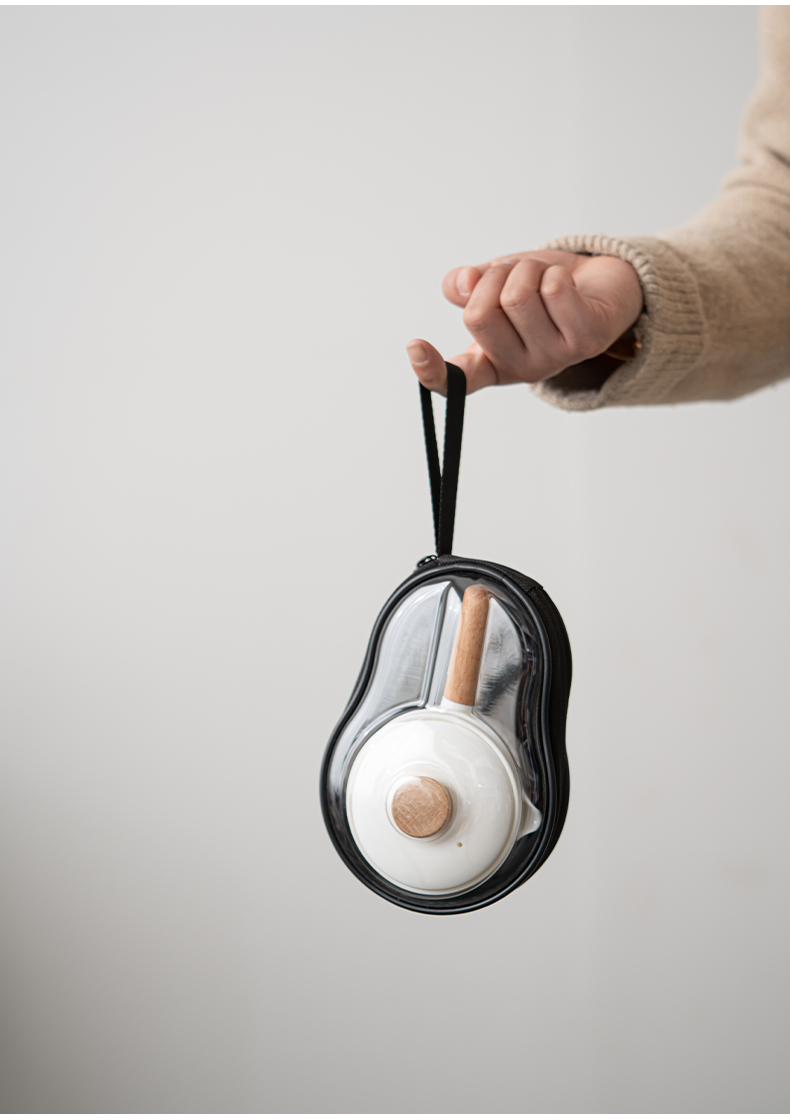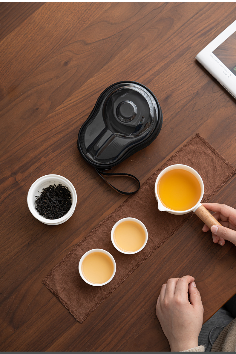 苏氏陶瓷(SUSHI CERAMICS)J0906旅行茶具木柄侧把壶快客杯便捷装(单位:套) 白色