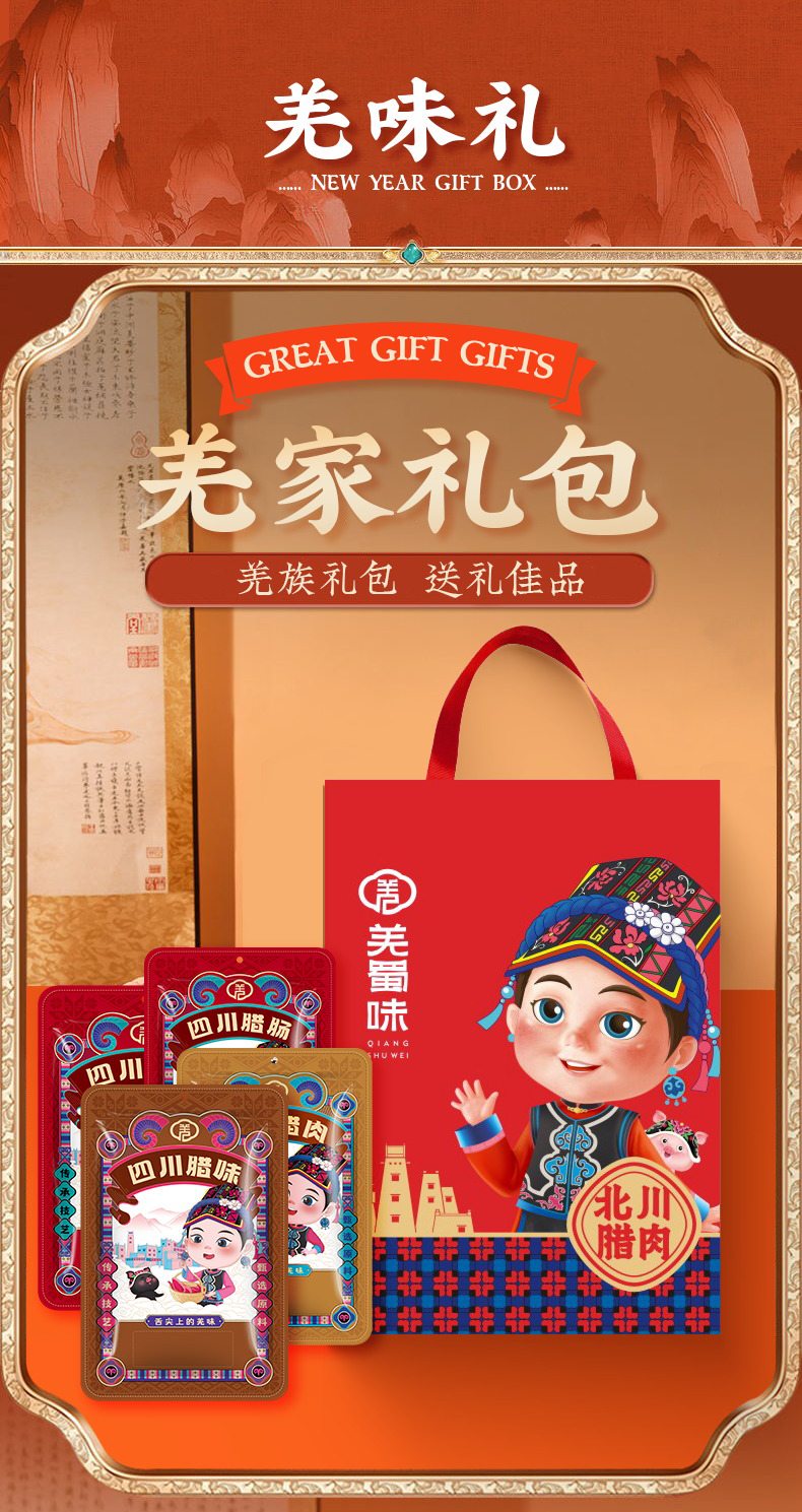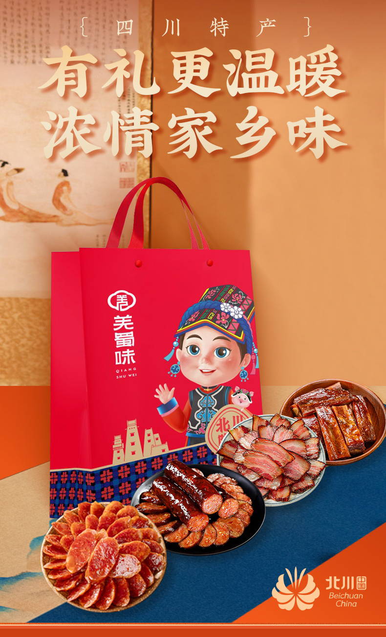 羌蜀味 北川腊肉香肠礼包1020g/份 红色