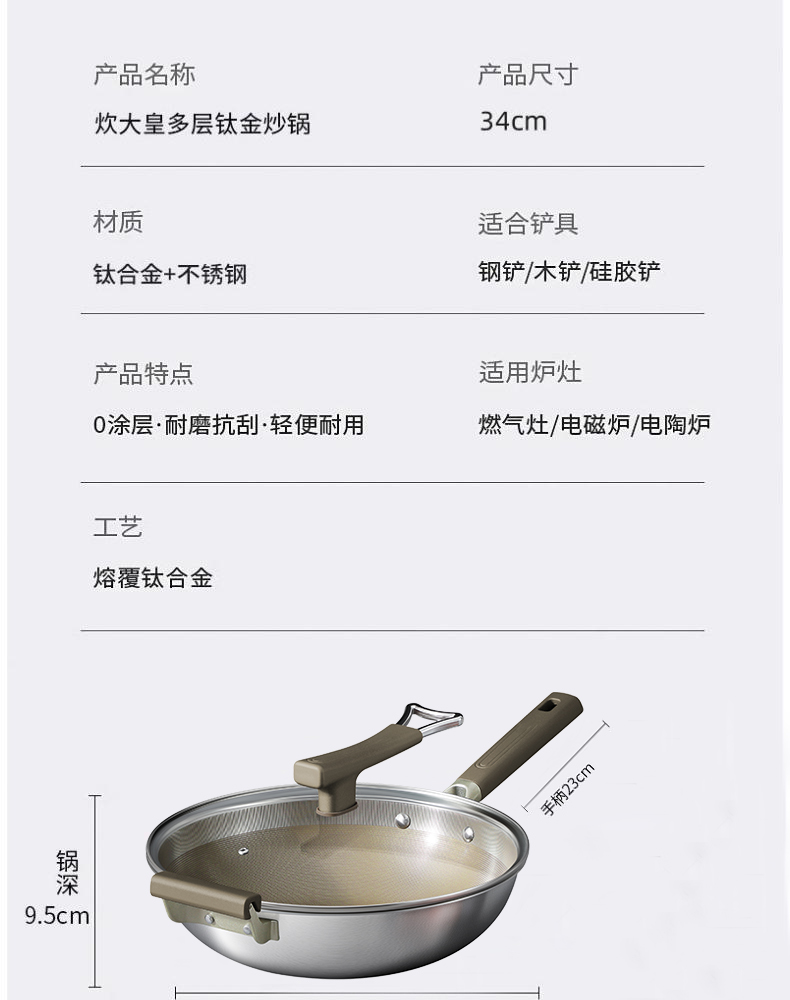 炊大皇多层钛金炒锅34cmCK73730 单位:只 不锈钢色