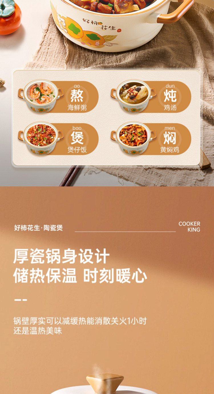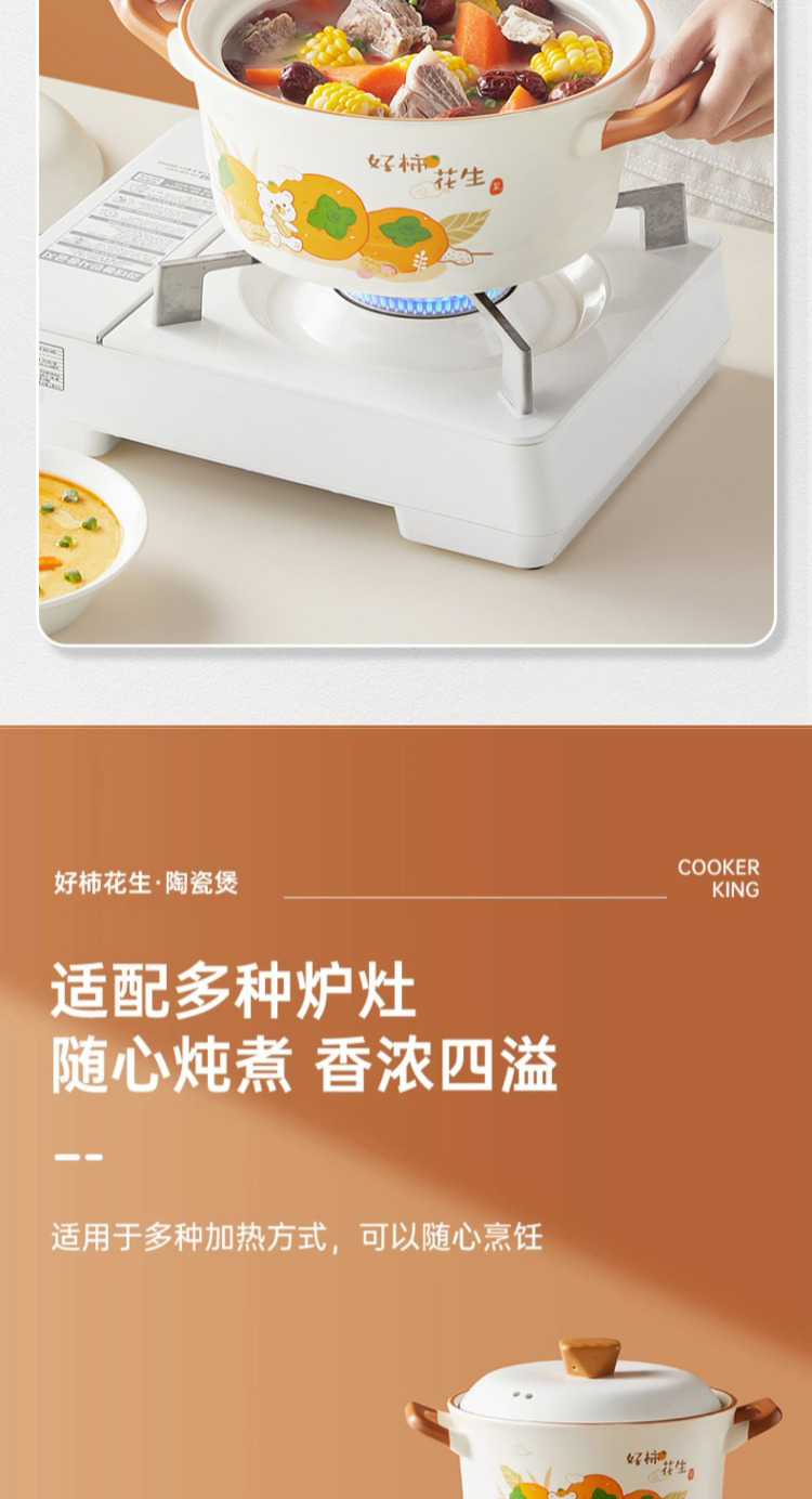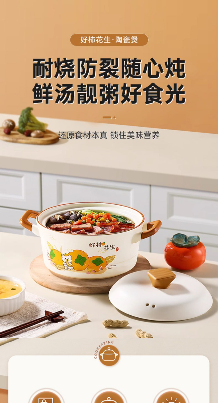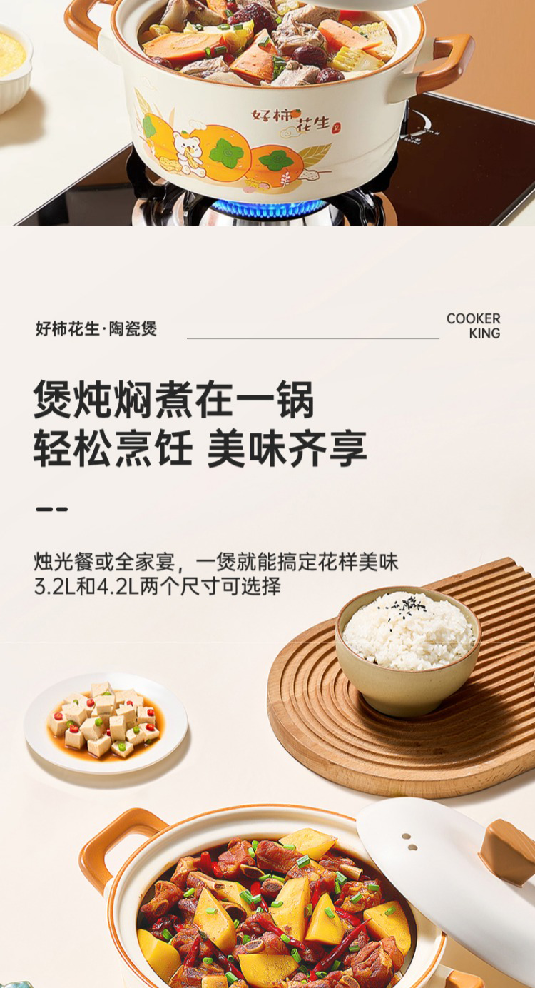炊大皇好柿花生陶瓷煲4.2L CK73495 单位:只 白色