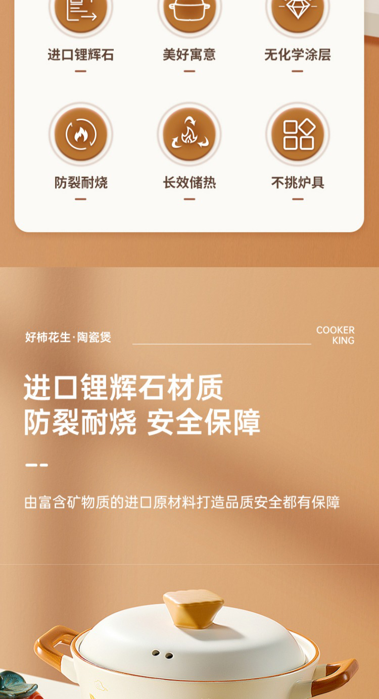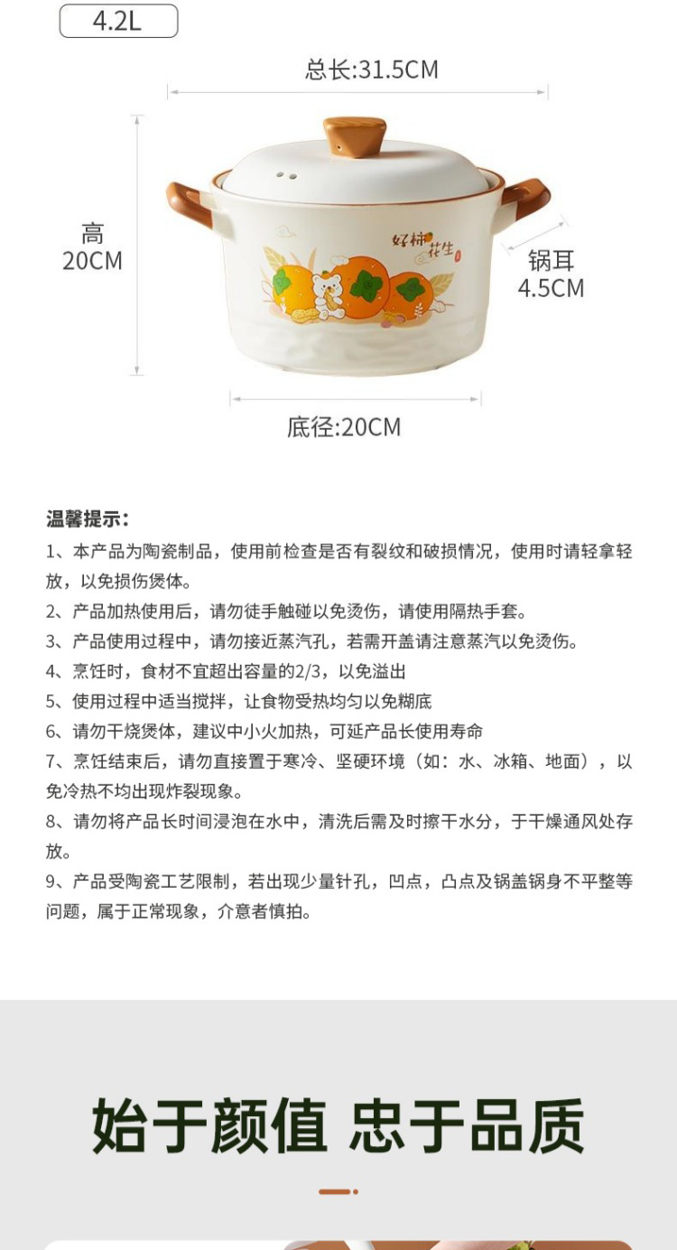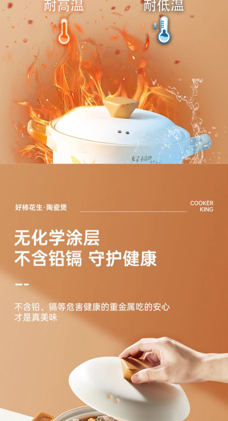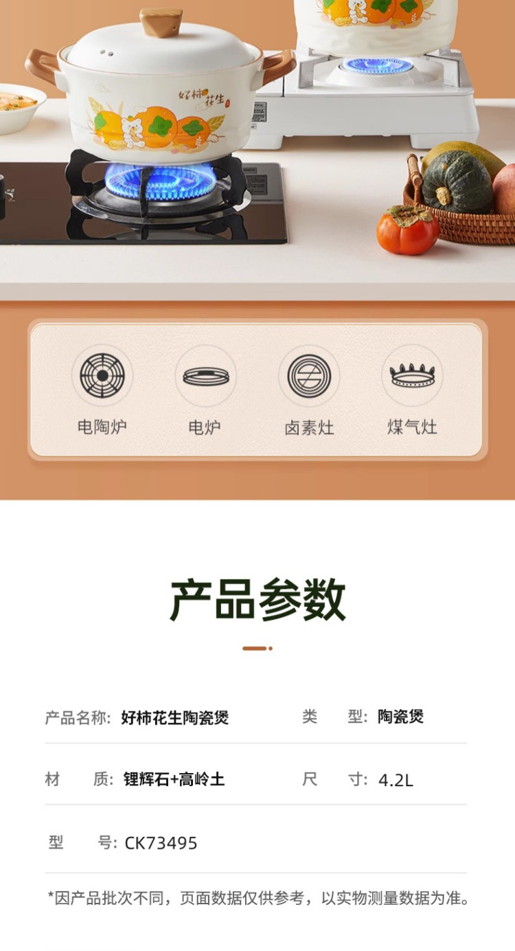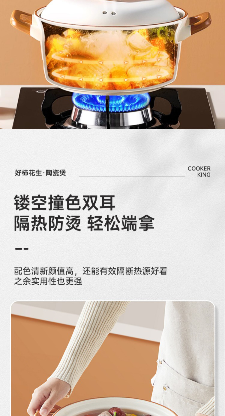 炊大皇好柿花生陶瓷煲4.2L CK73495 单位:只 白色