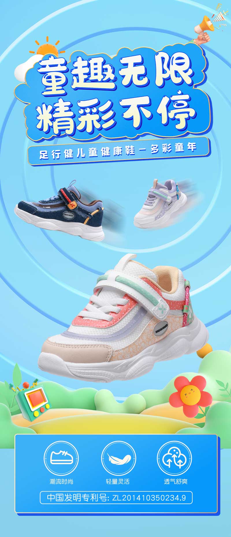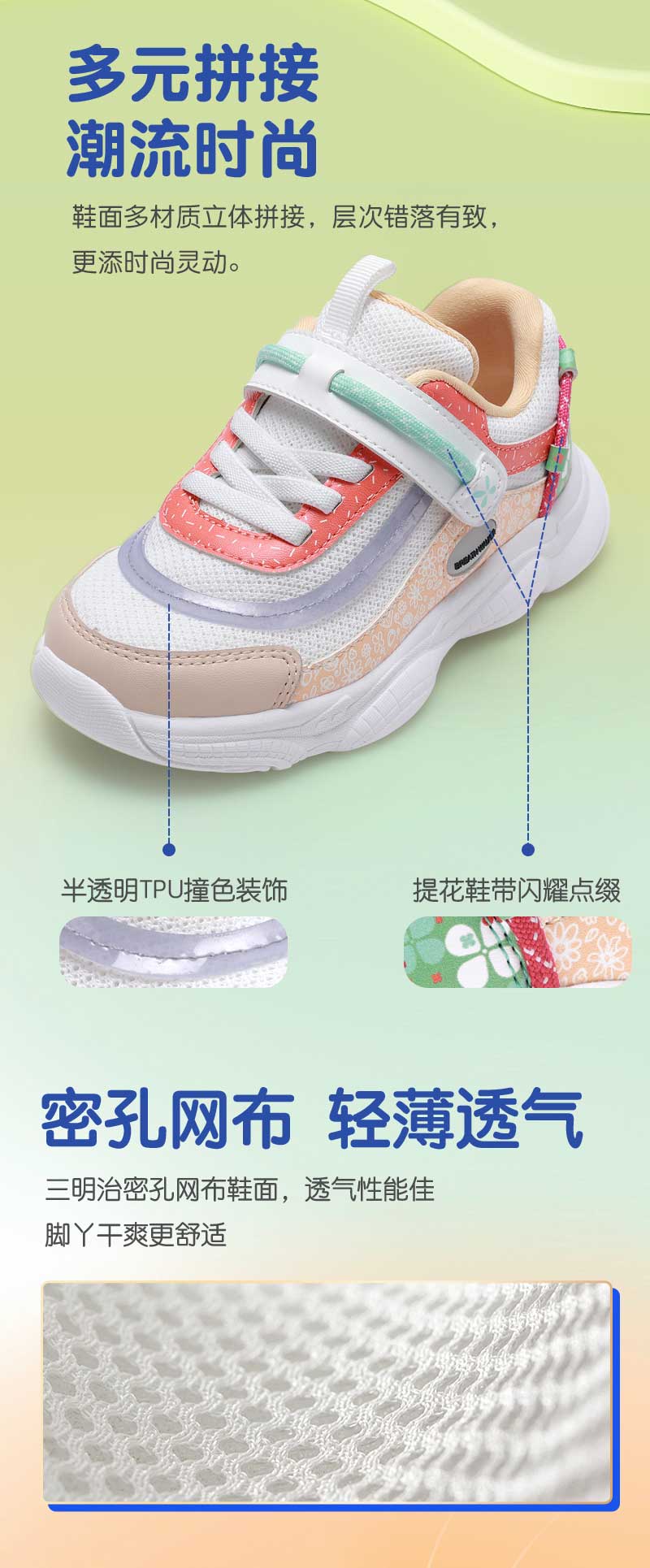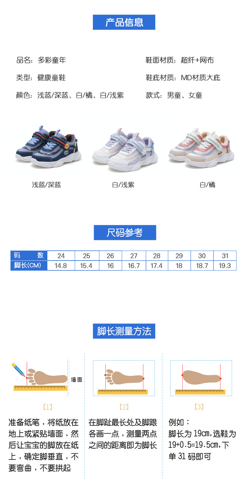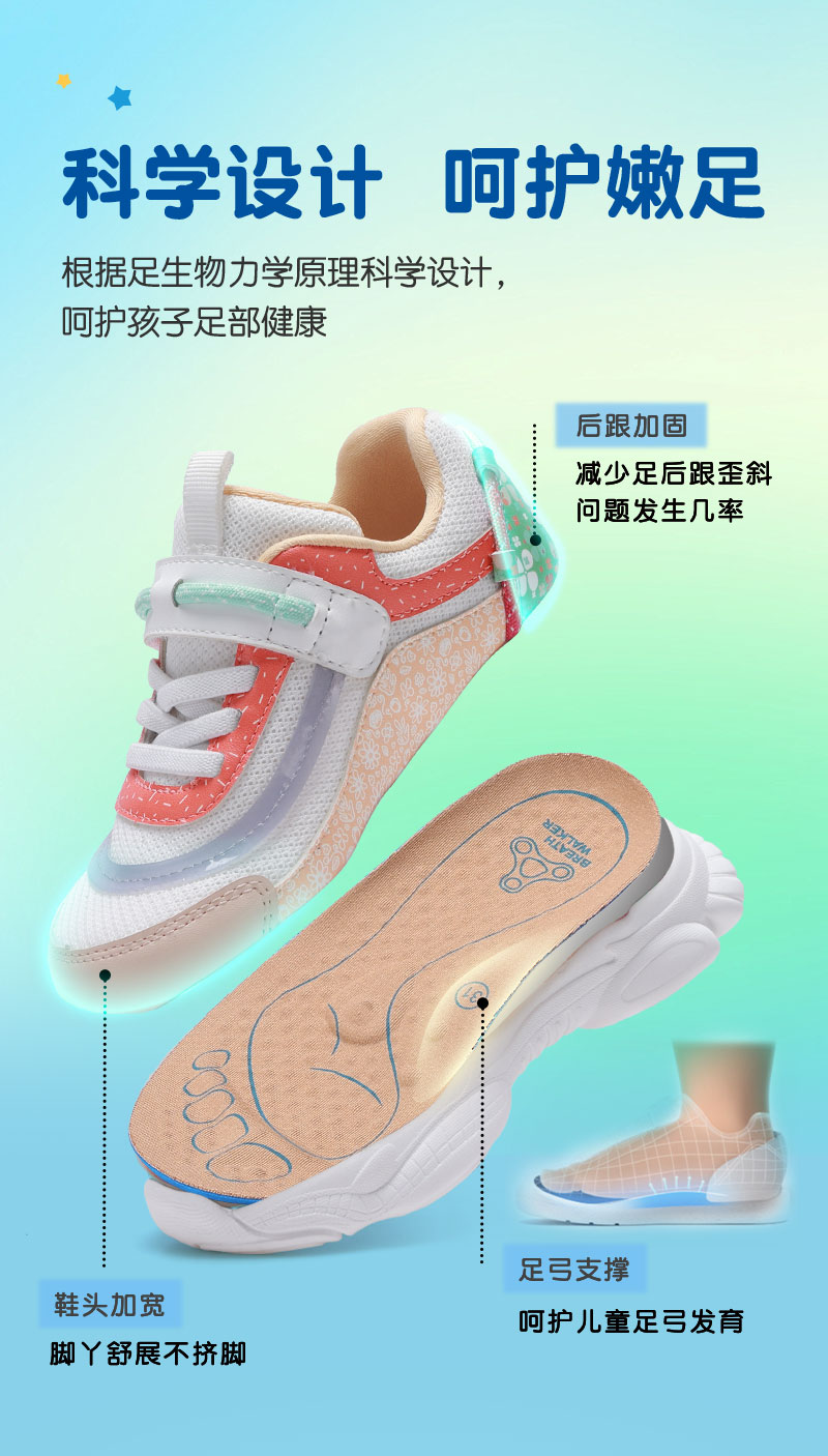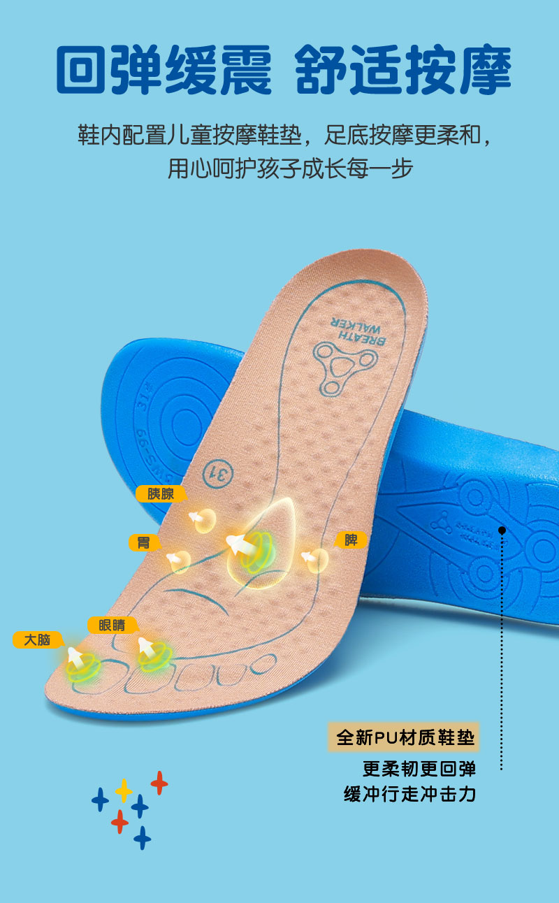 足行健按摩鞋夏季单网鞋魔术贴免系带男童女童-多彩童年 单位:双 浅蓝/深蓝 26